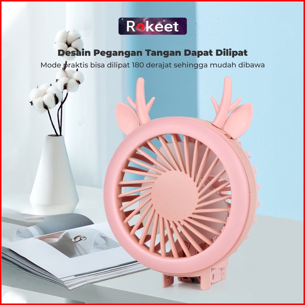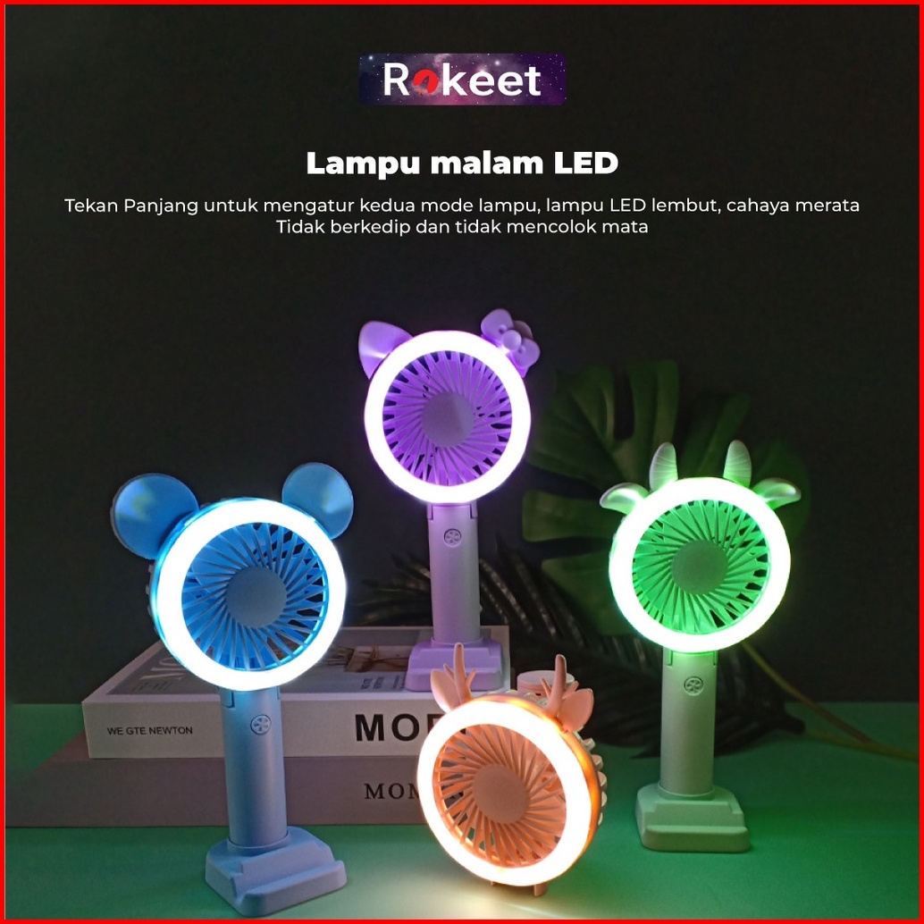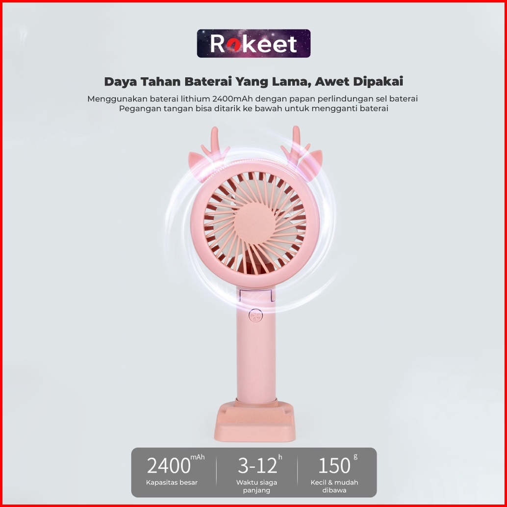 Rokeet Kipas Angin Karakter Korea Design Led Portable Recharge Fan Usb