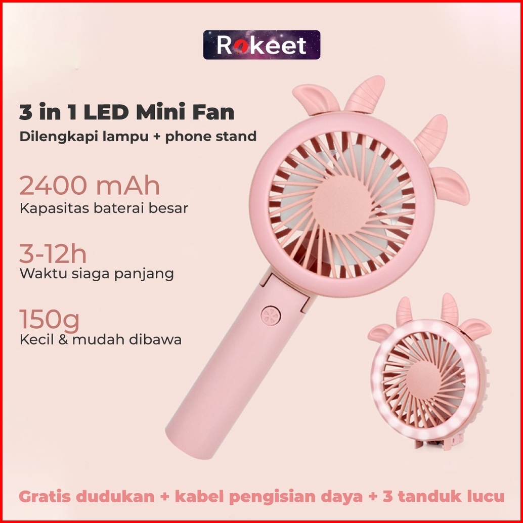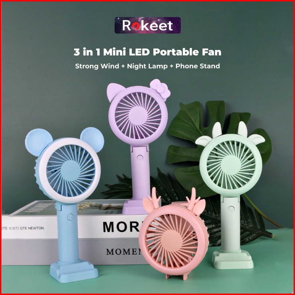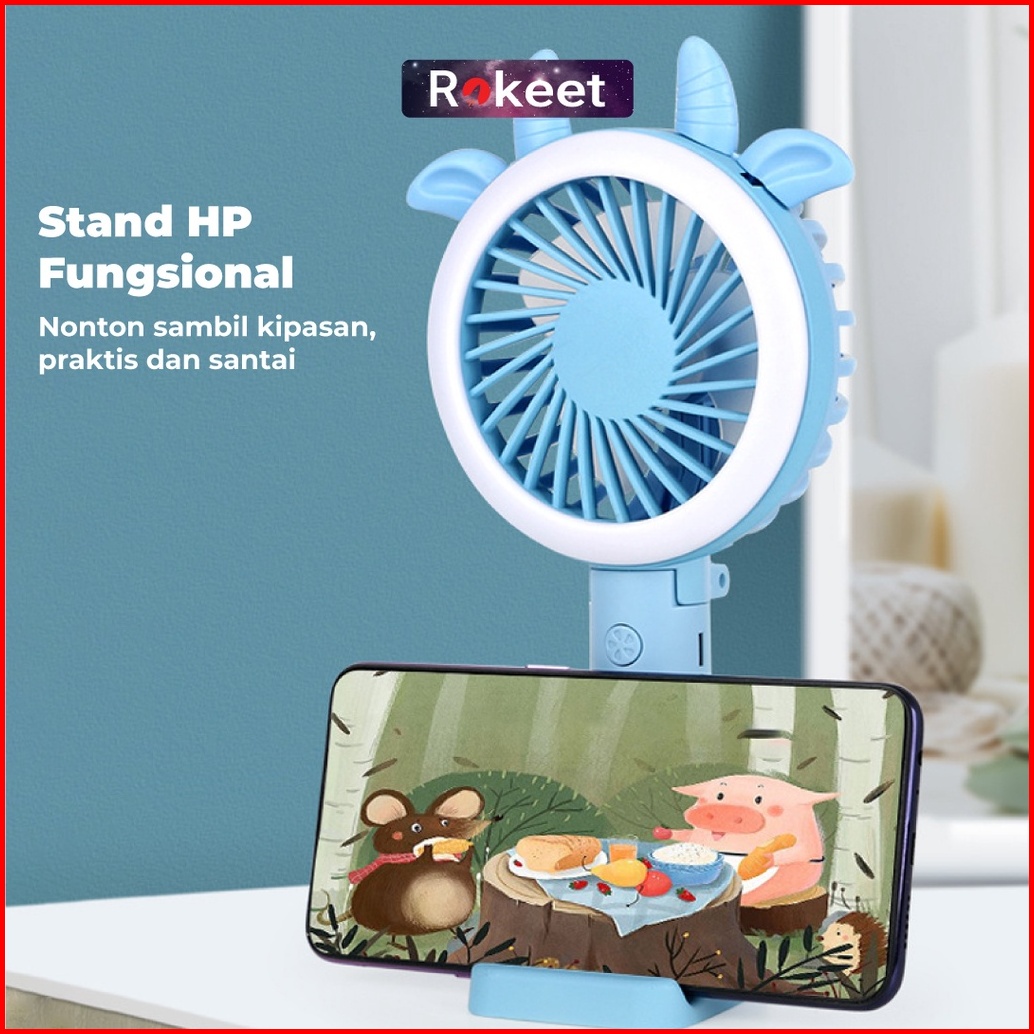 Rokeet Kipas Angin Karakter Korea Design Led Portable Recharge Fan Usb