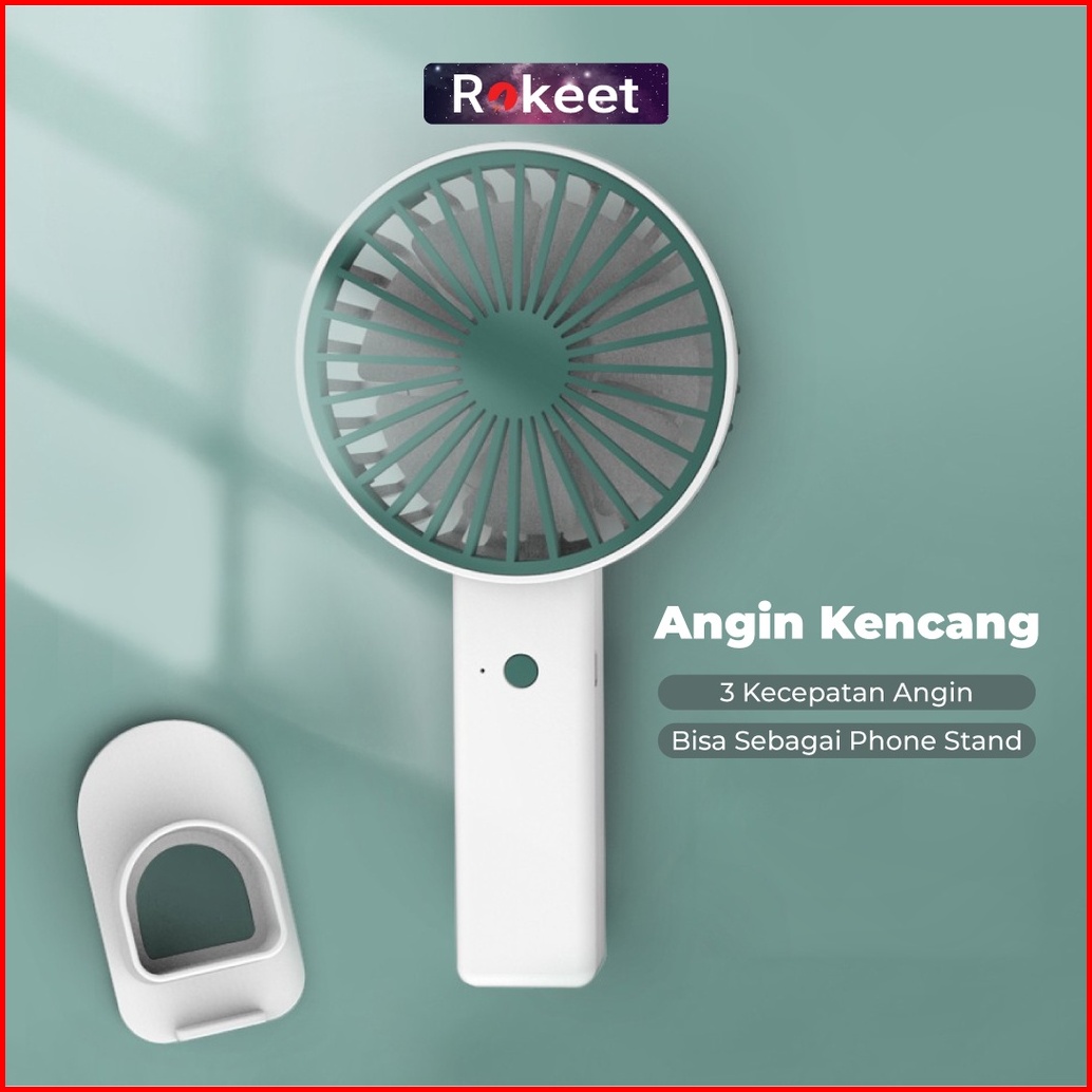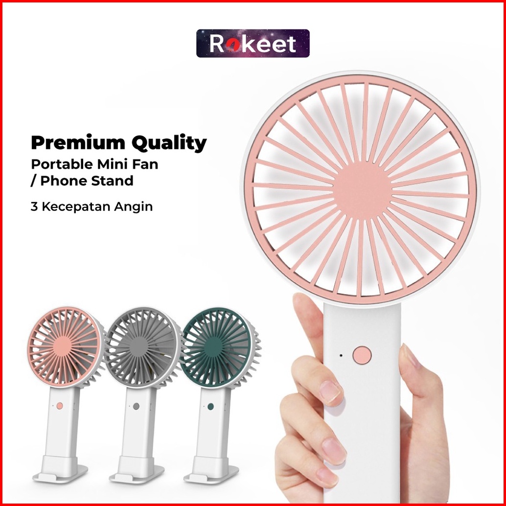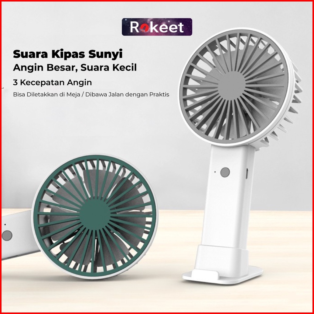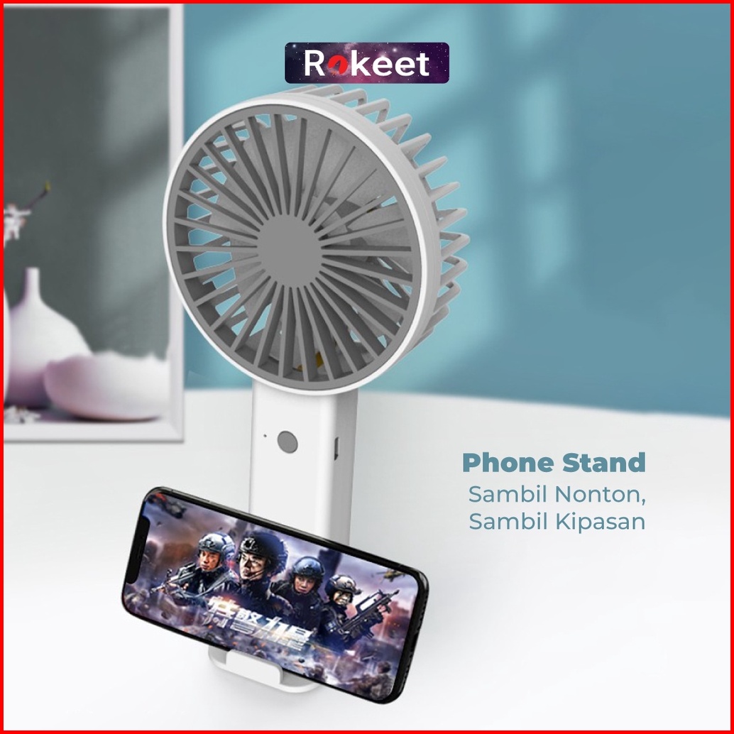 Rokeet Kipas Angin Mini Portable Rechargeable Fan 3-speed Kipas Angin Genggam Bisa Phone Stand