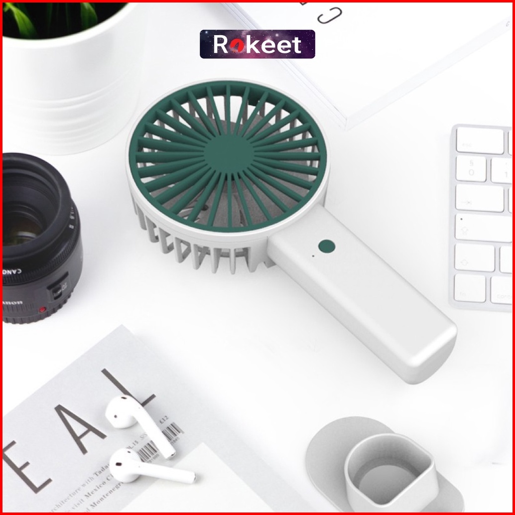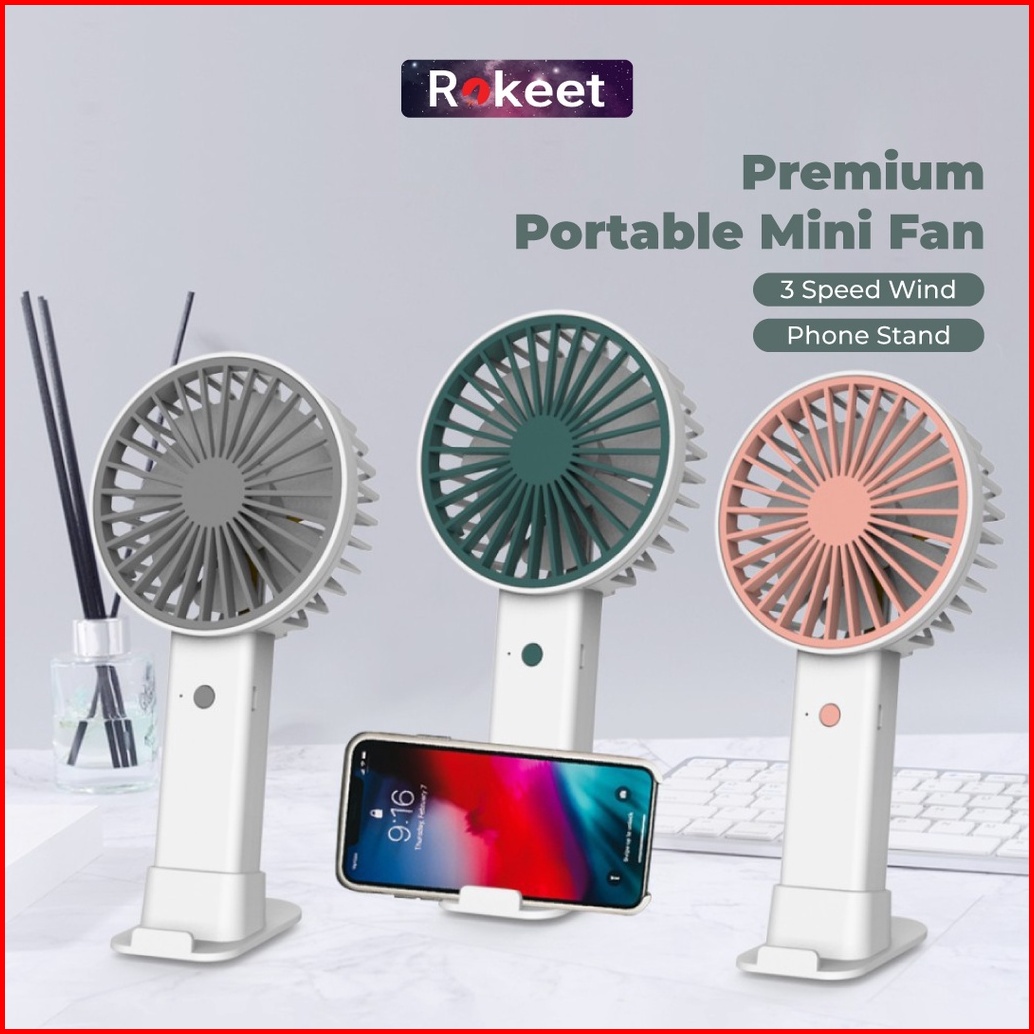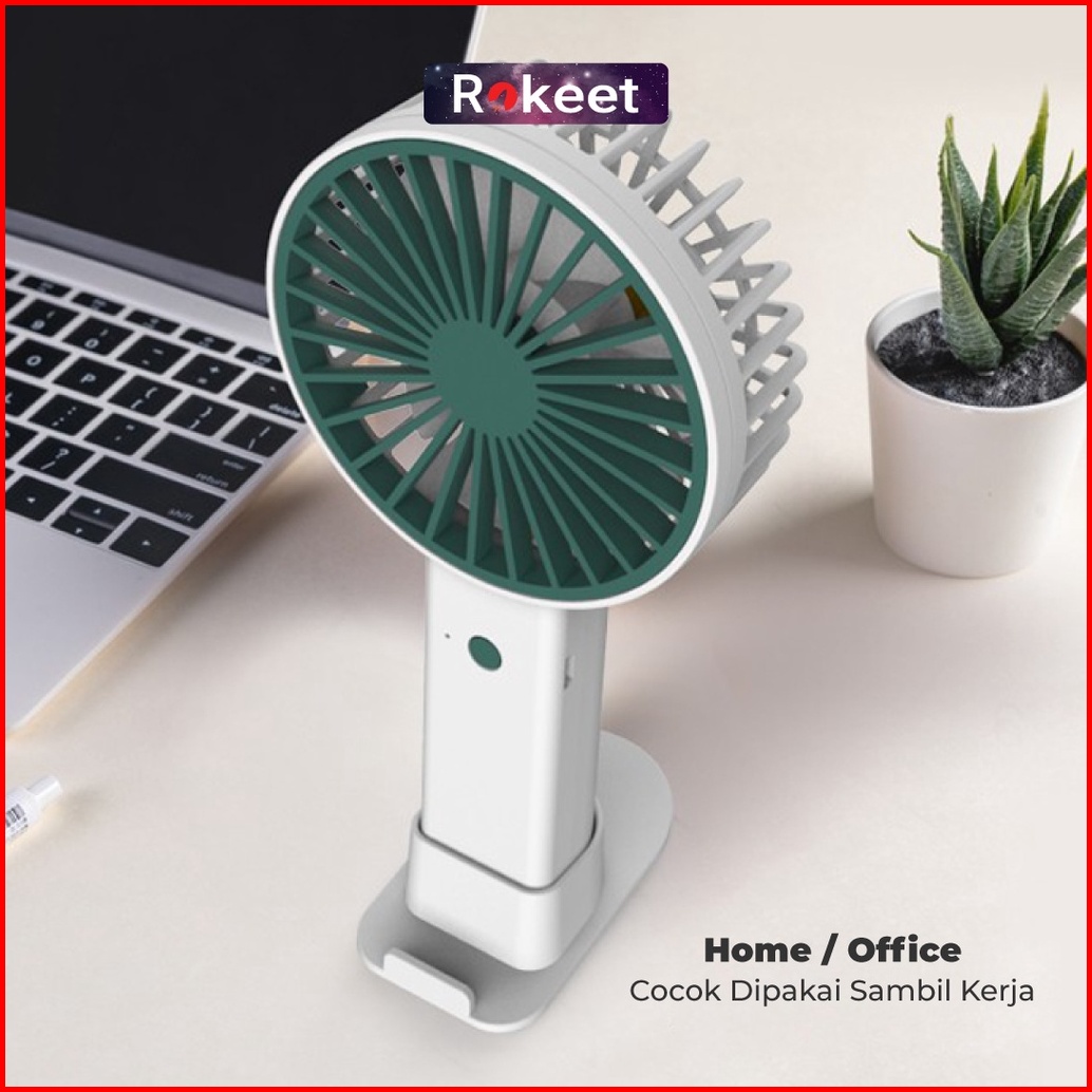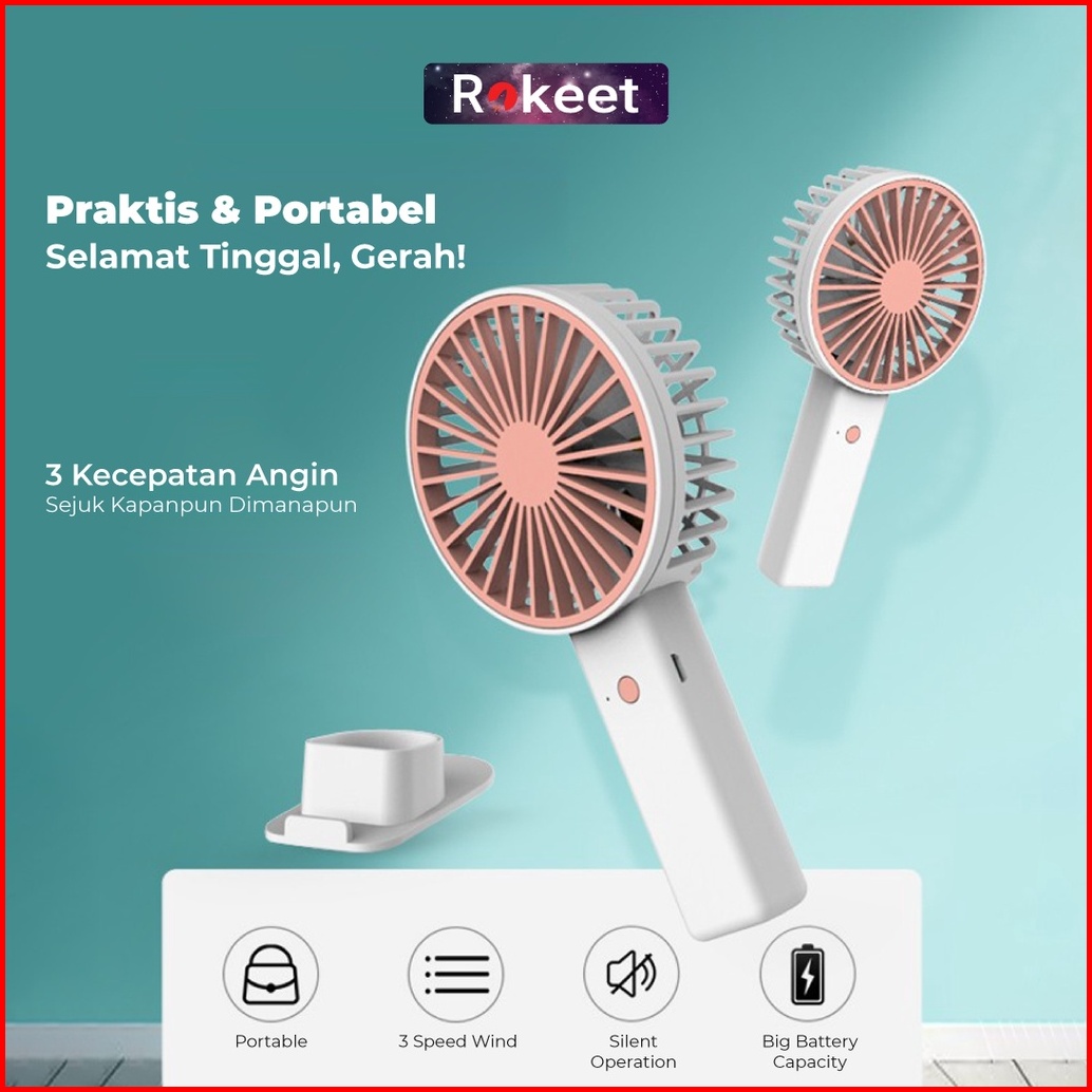 Rokeet Kipas Angin Mini Portable Rechargeable Fan 3-speed Kipas Angin Genggam Bisa Phone Stand