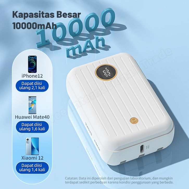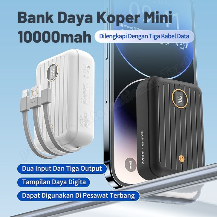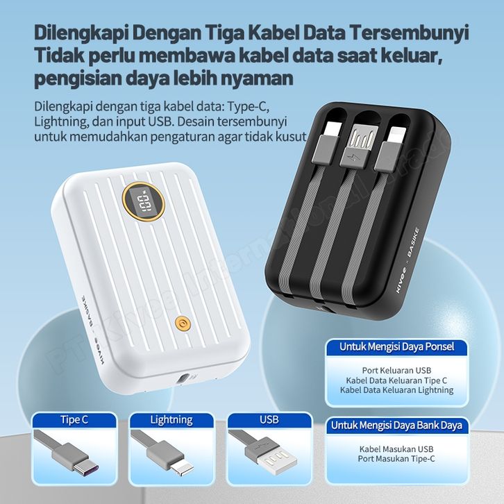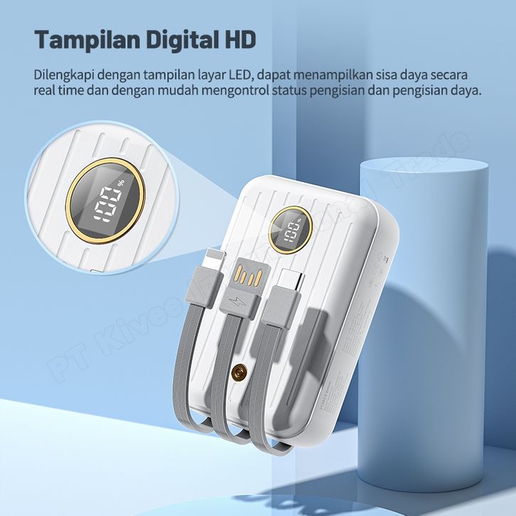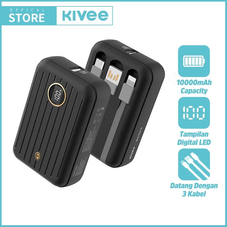 KIVEE Powerbank Mini Portable Type C fast charging Power bank 10000mAh LCD With kabel data 3-in-1