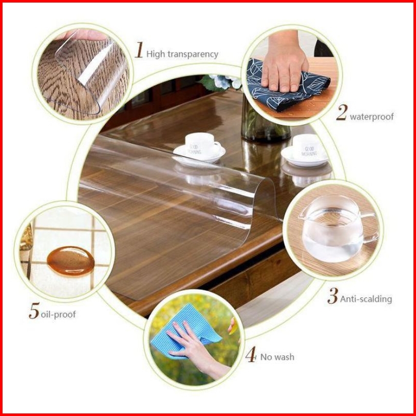 Taplak Bening Bulat Taplak Meja Tebal 1mm Berbagai Ukuran Tahan Panas Waterproof
