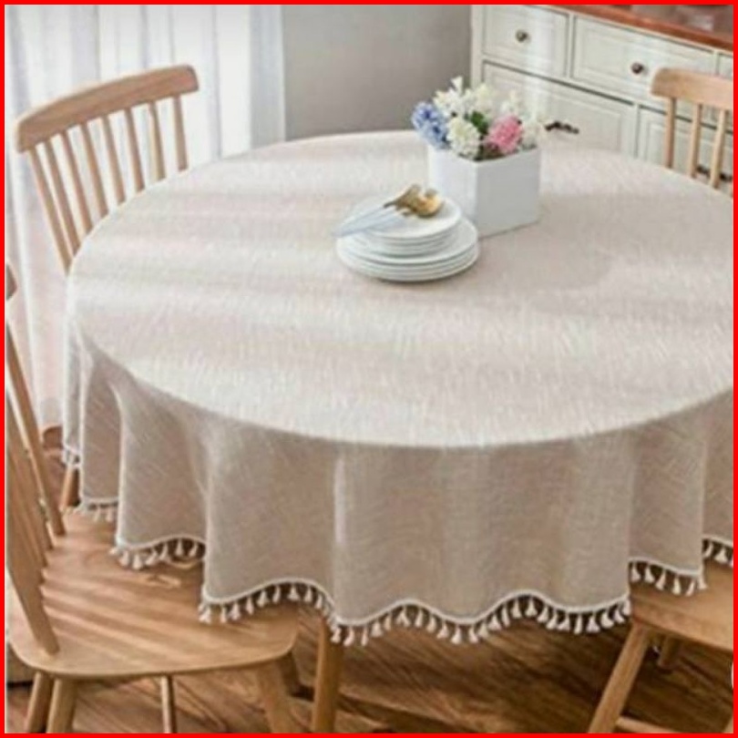 Taplak Meja Makan Bulat Polos Atau Renda 4 Kursi