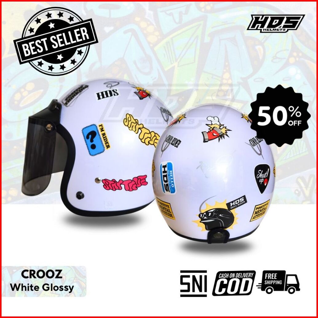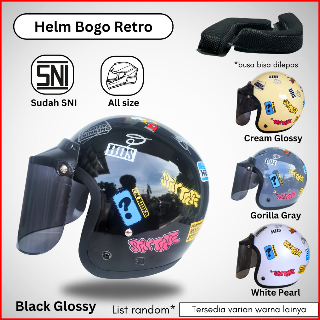 Helm Bogo Dewasa Retro Classic Crooz Half Face Hds Helmet Motorcycle Sni Pria Wanita Cepol Hijab