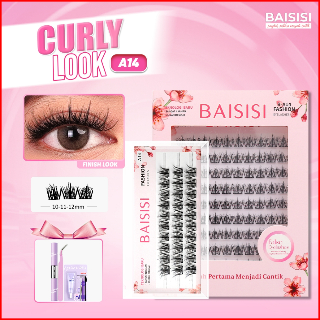 Baisisi Bulu Mata Palsu A14 Bulumata Natural Curly Segmentasi Reusable Individual Lashes