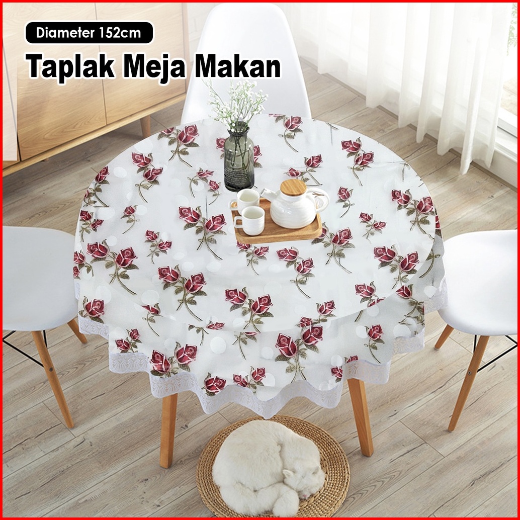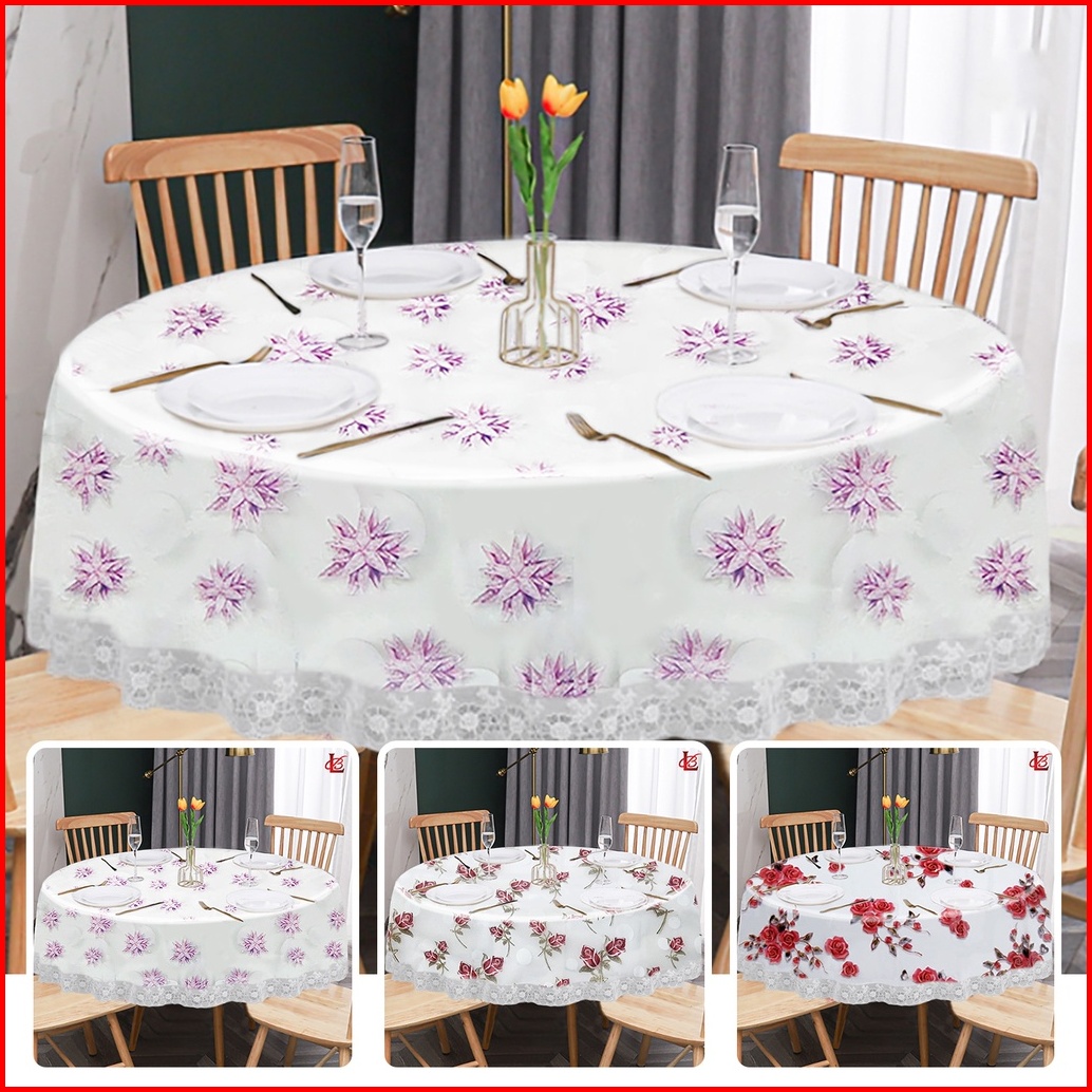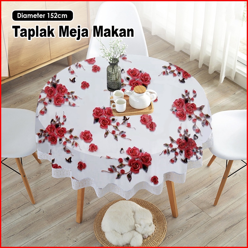 Taplak Meja Makan Anti Air Motif Bulat Diameter 152cm Motif Bunga Cantik - D14