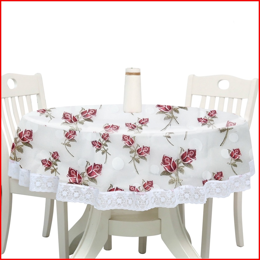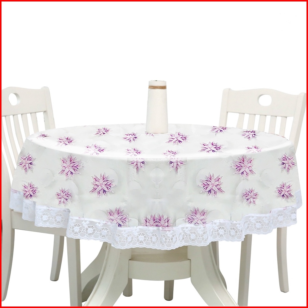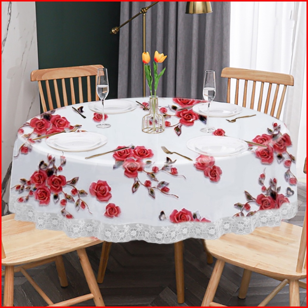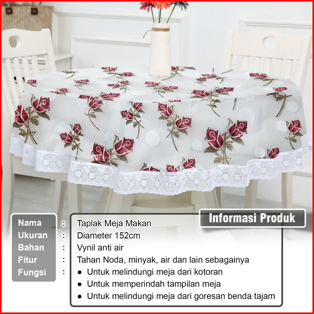 Taplak Meja Makan Anti Air Motif Bulat Diameter 152cm Motif Bunga Cantik - D14