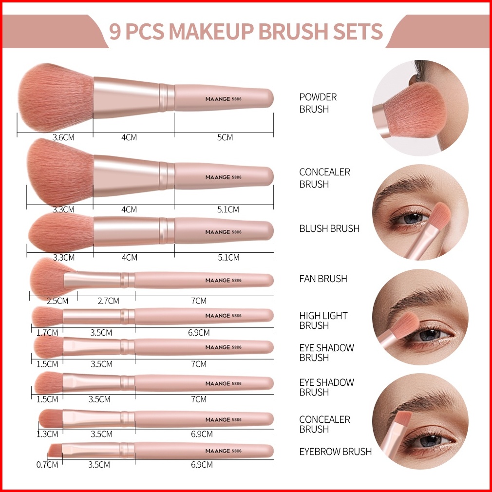 Maange 9 Pcs Set Kuas Make Up Brush Make Up Concealer Set Kuas Rias Dengan Spons Kecantikan