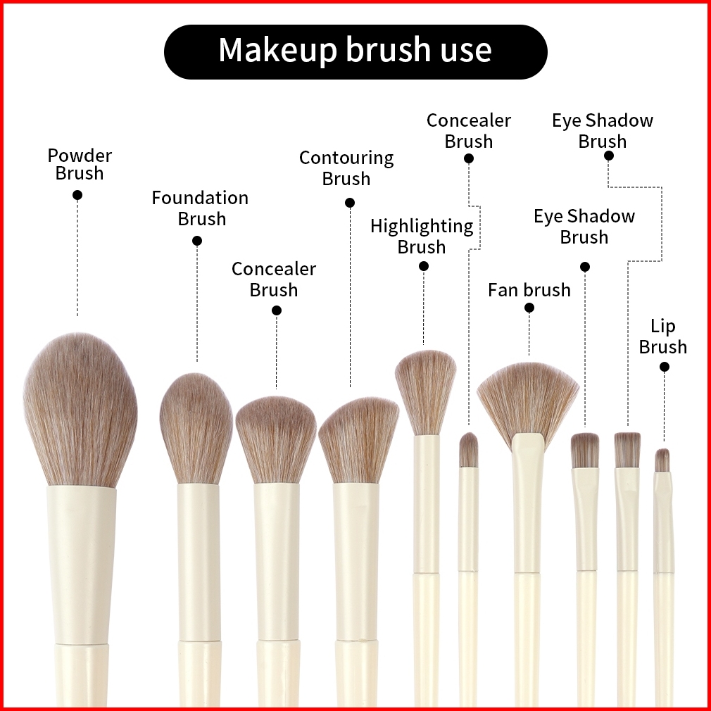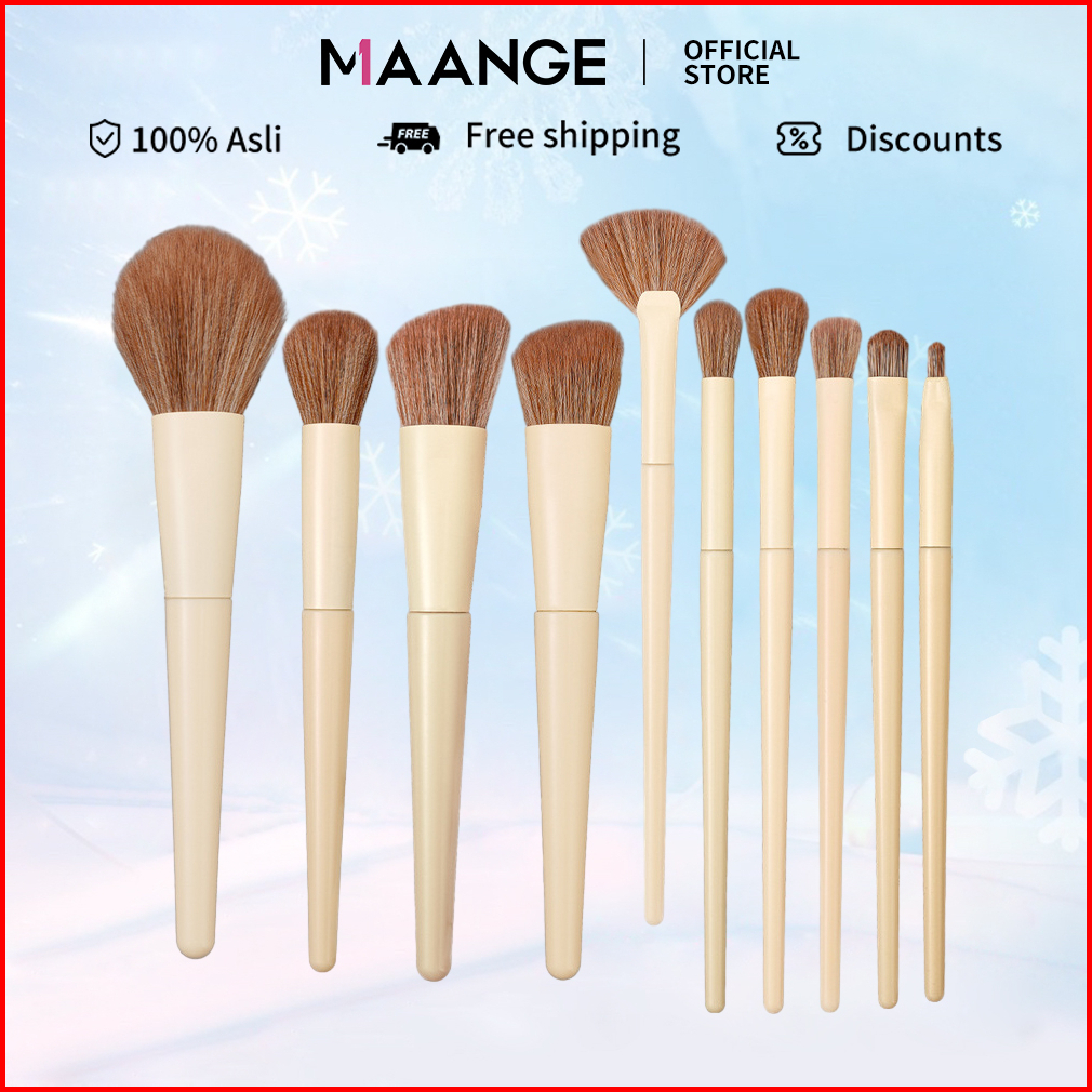 Maange 10pcs Kuas Makeup Set Kosmetic Brush Powder Eye Shadow Foundation Blusher Blending Beauty Brush Make Up 9400