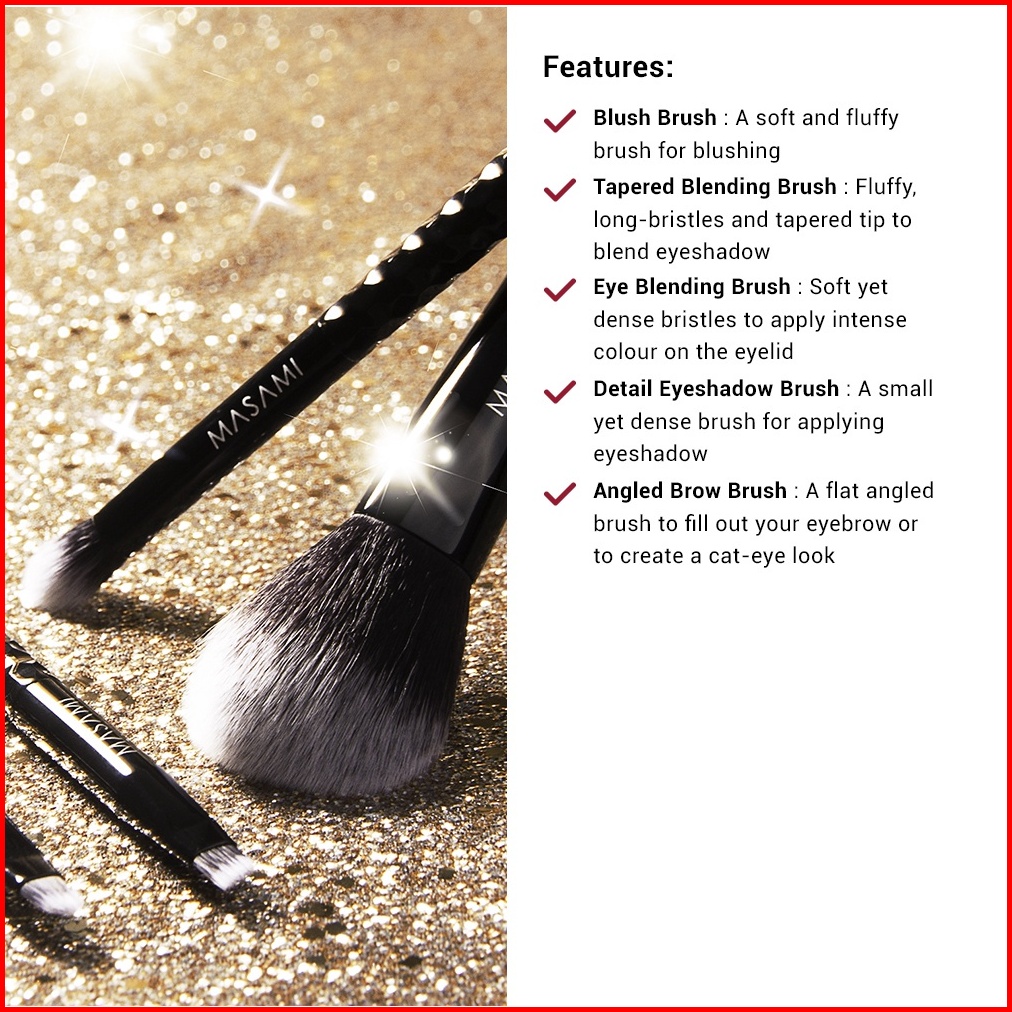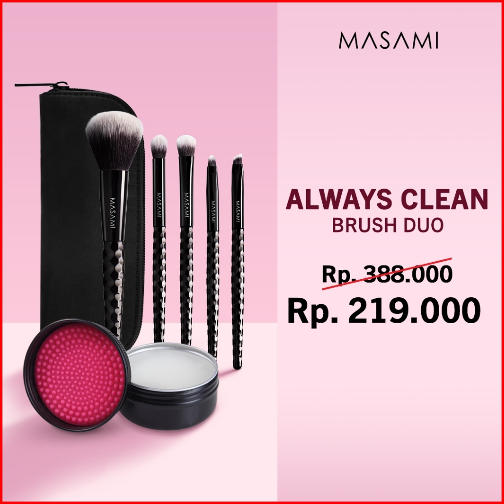 Masami Sparkling Brush Set Kuas Makeup Set Bundle Always Clean Brush Duo