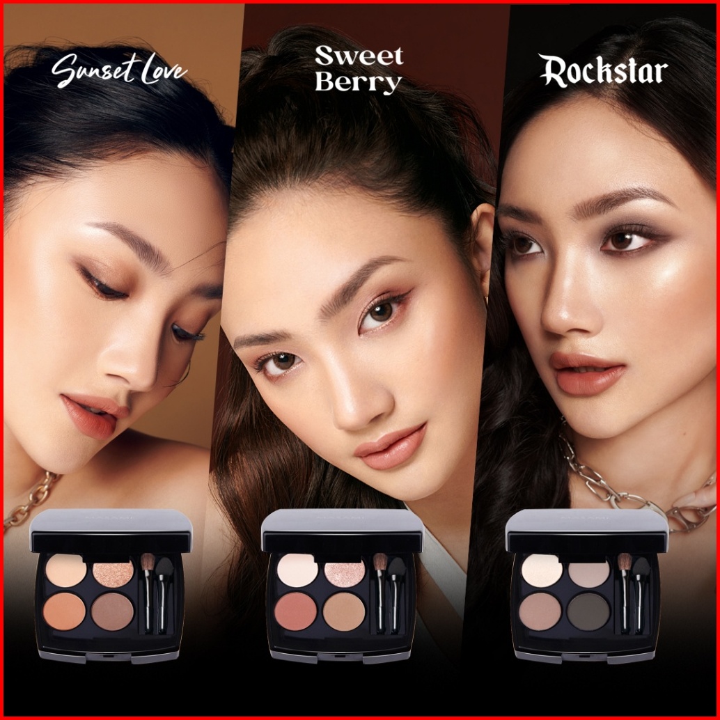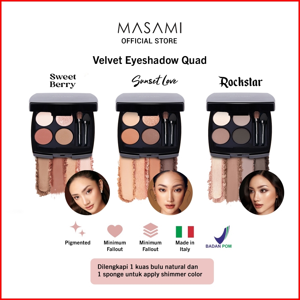 Masami Cosmetics Velvet Eyeshadow Quad 4 Shades Eyeshadow Palette High Pigmented Easy To Blend Lasting Palet Eyeshadow M