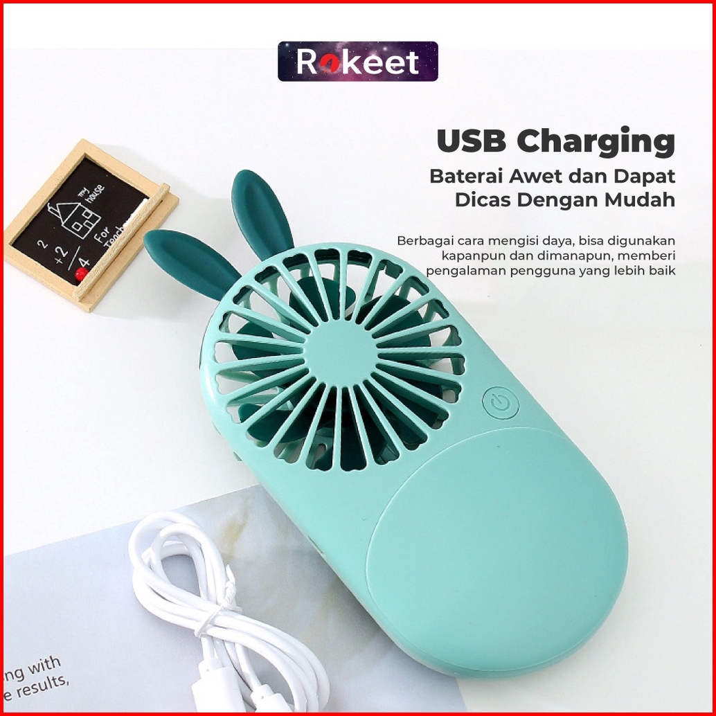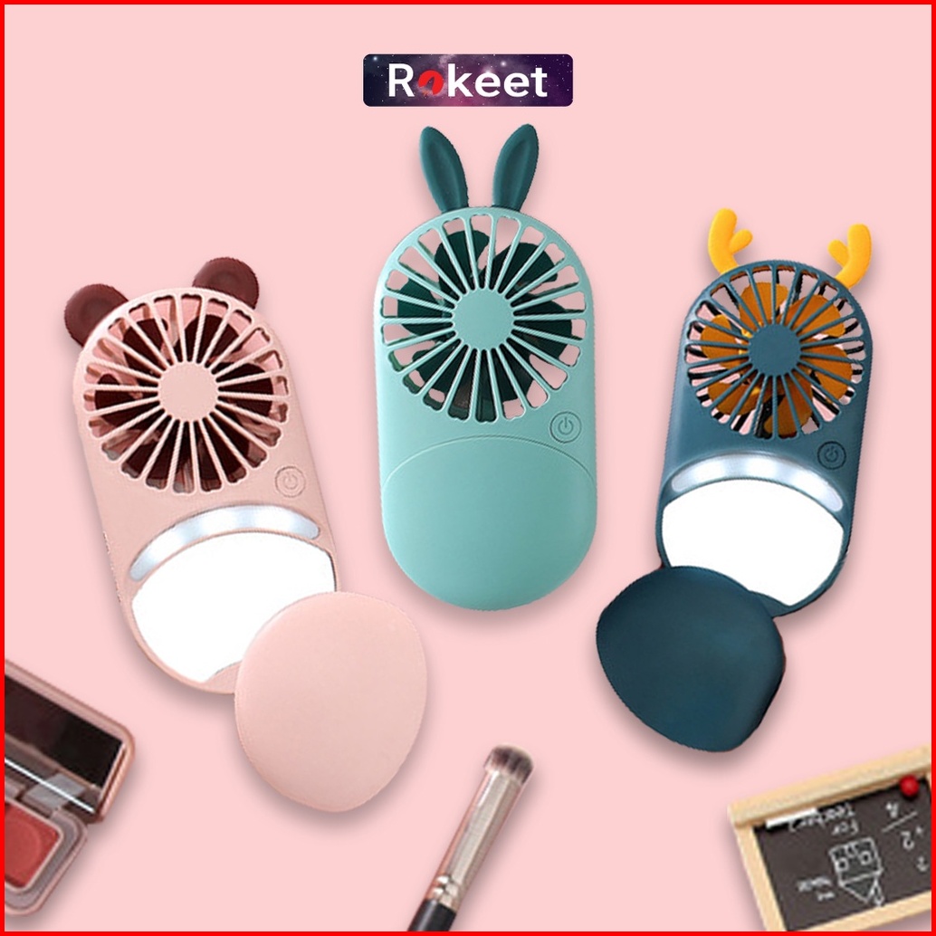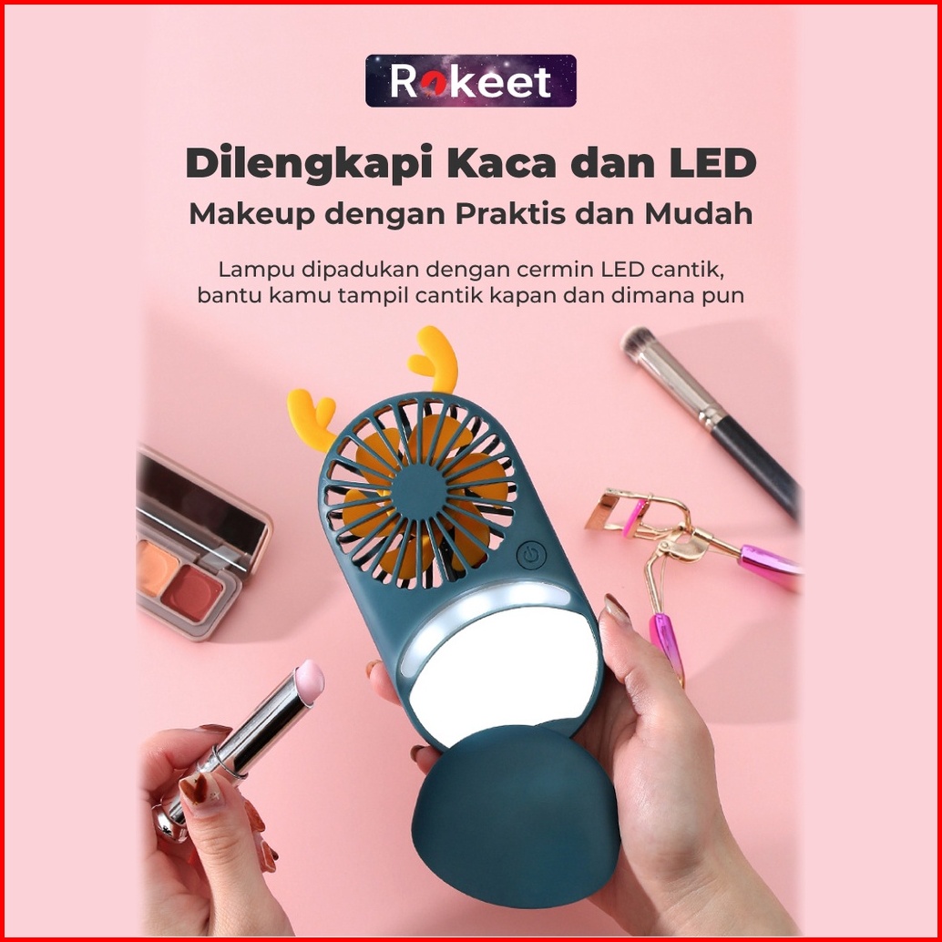 Rokeet Kipas Cermin Led 3in1 Mini Fan Karakter Portabel Cermin Angin Multifungsi