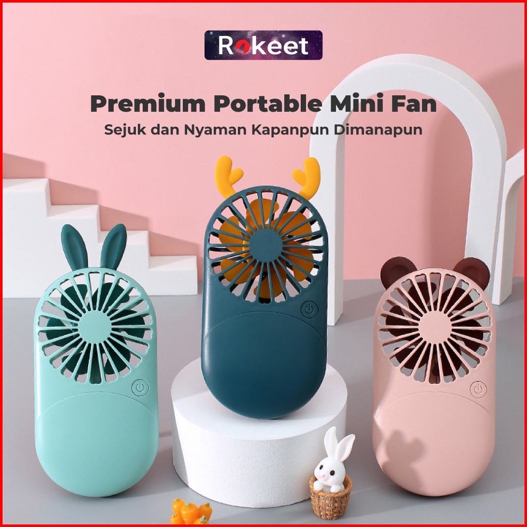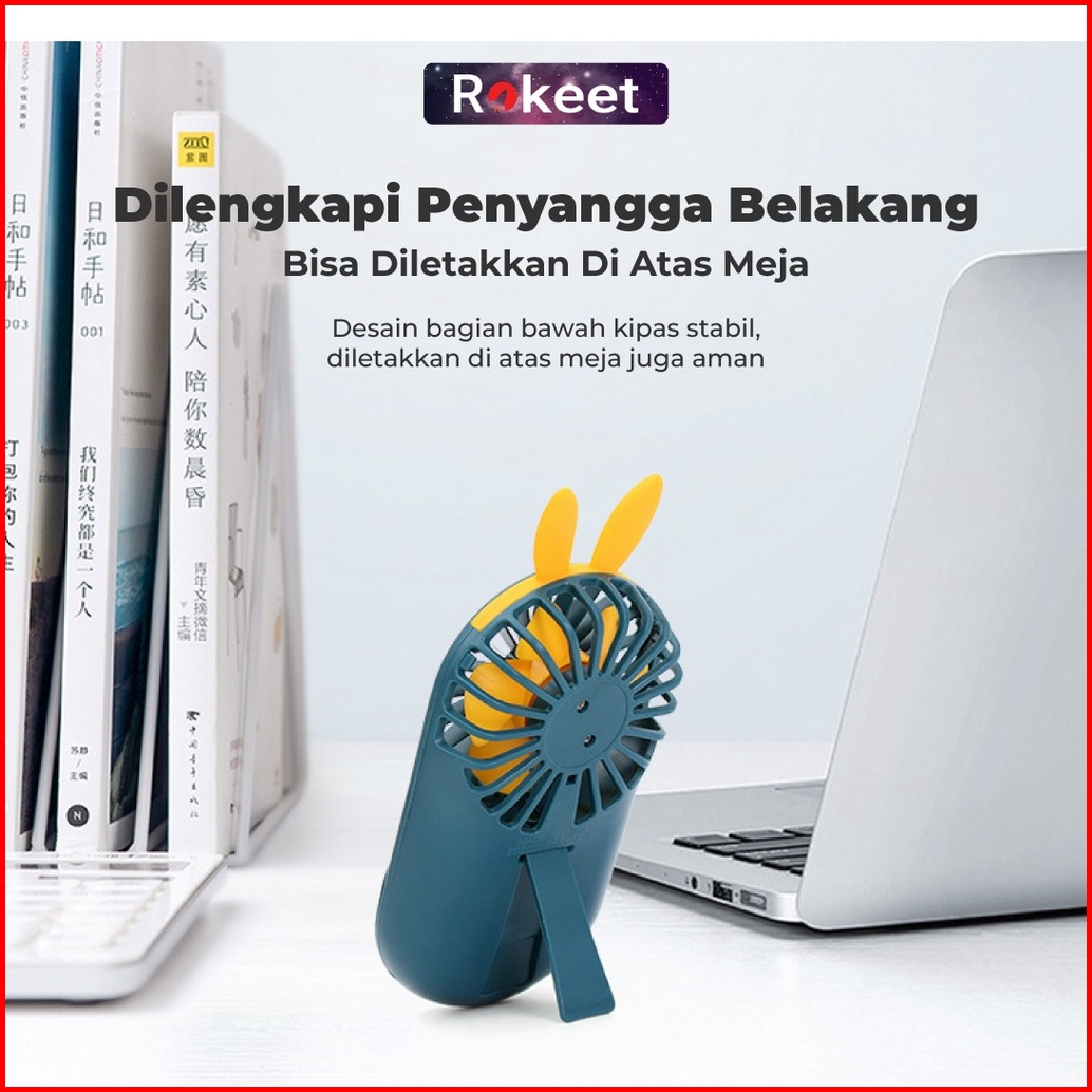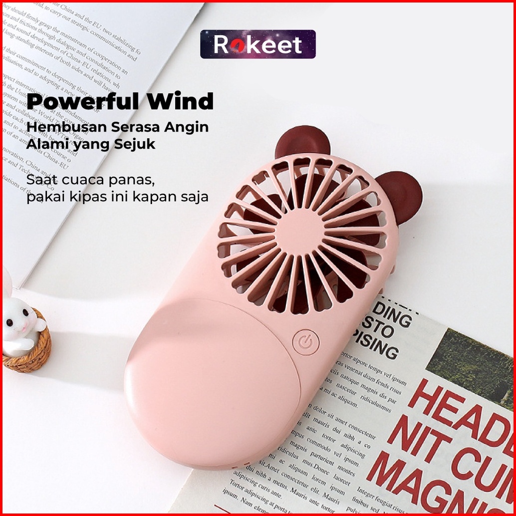 Rokeet Kipas Cermin Led 3in1 Mini Fan Karakter Portabel Cermin Angin Multifungsi