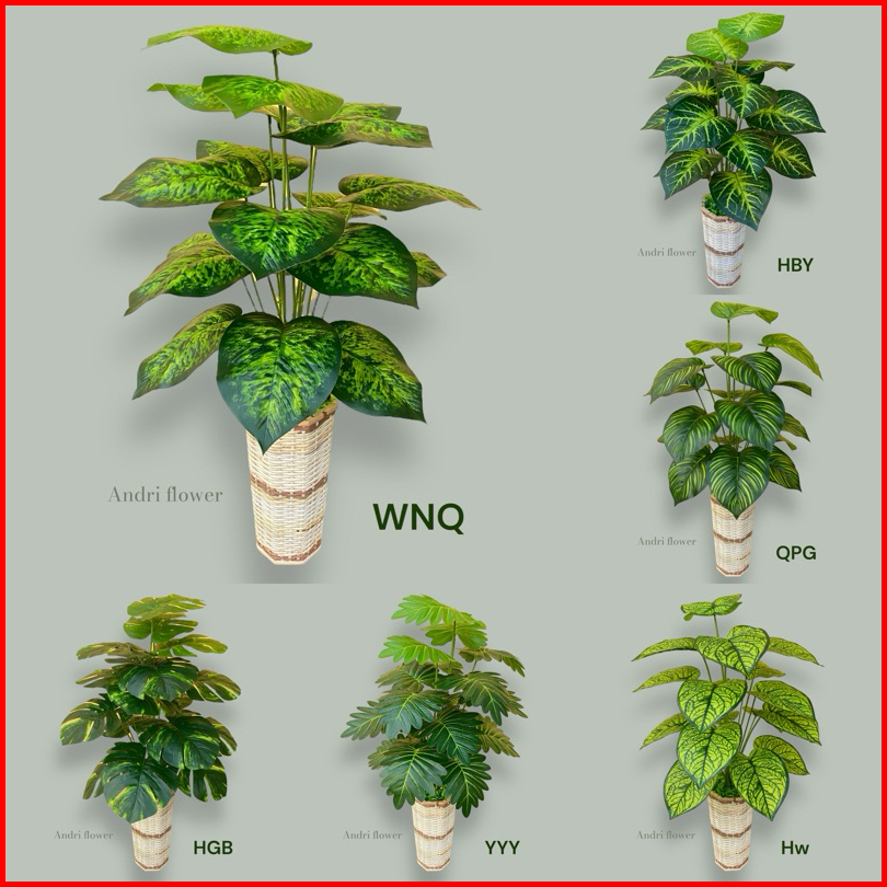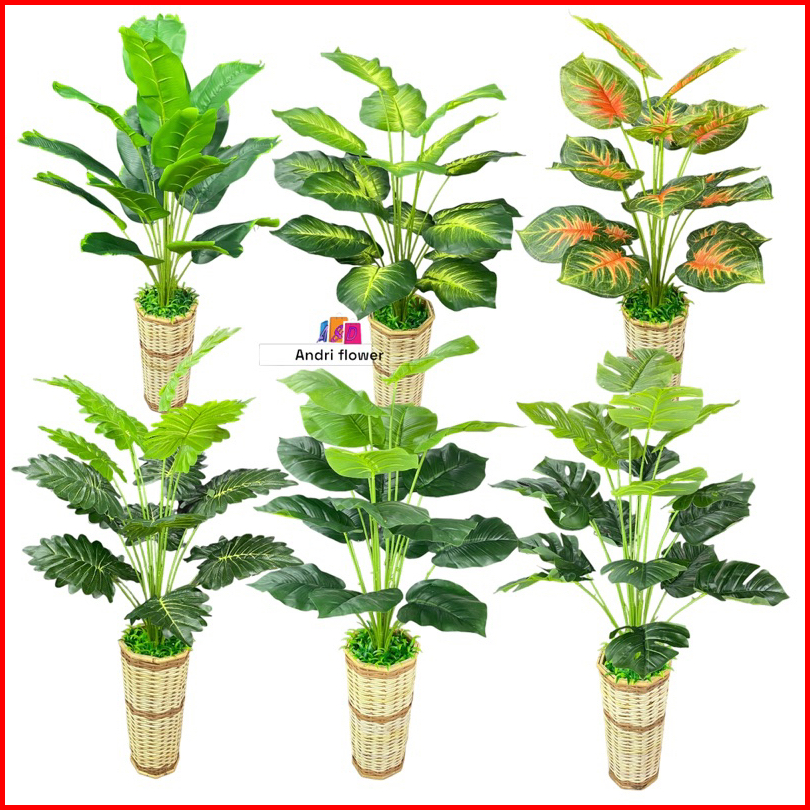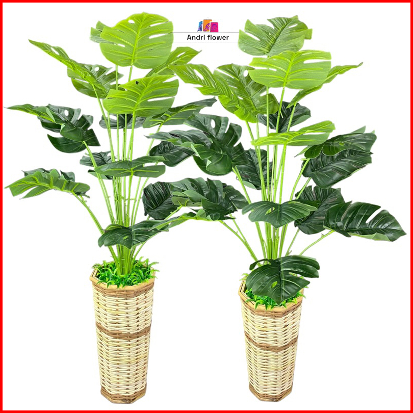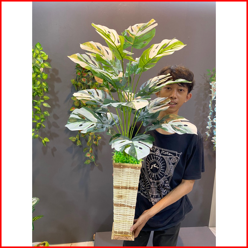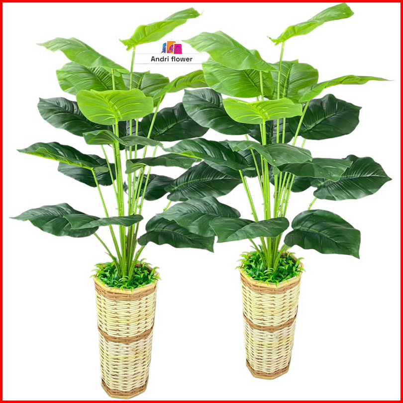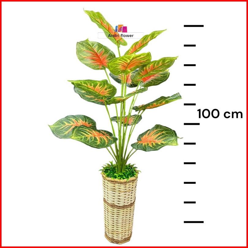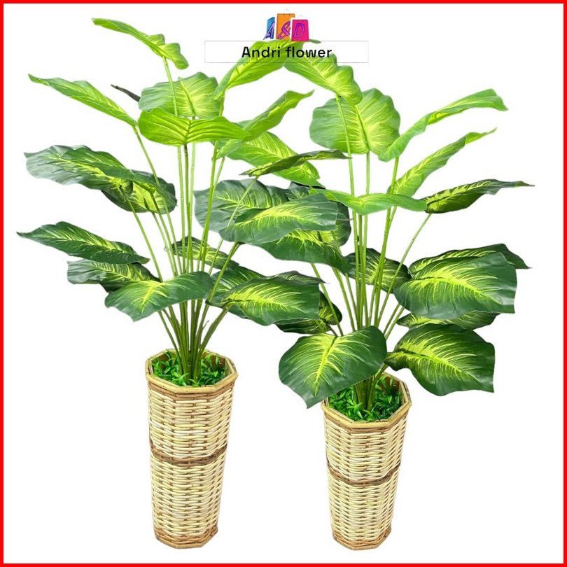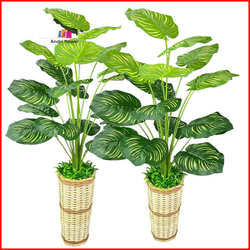 Bunga Hias Daun Jumbo 18 Kuntum Satu Set Dengan Pot Rotan Tingi 100 Cm