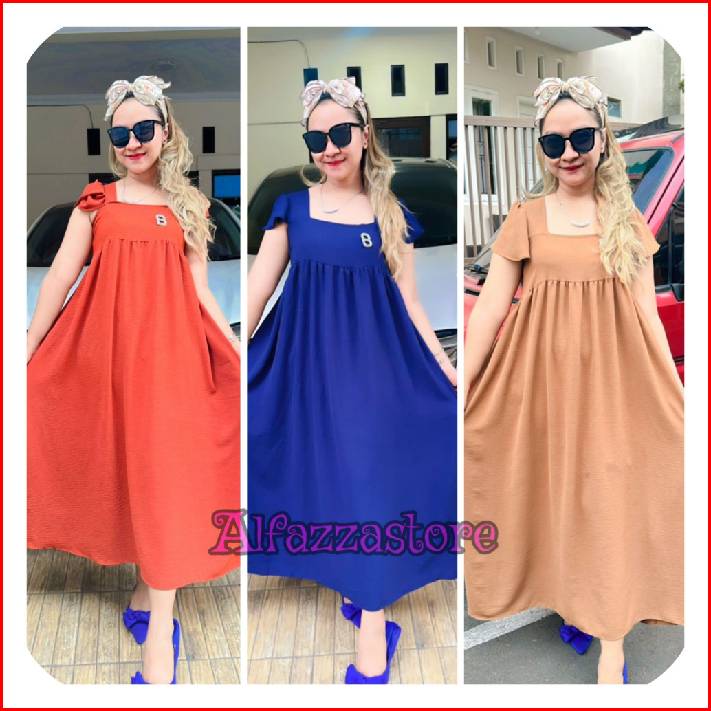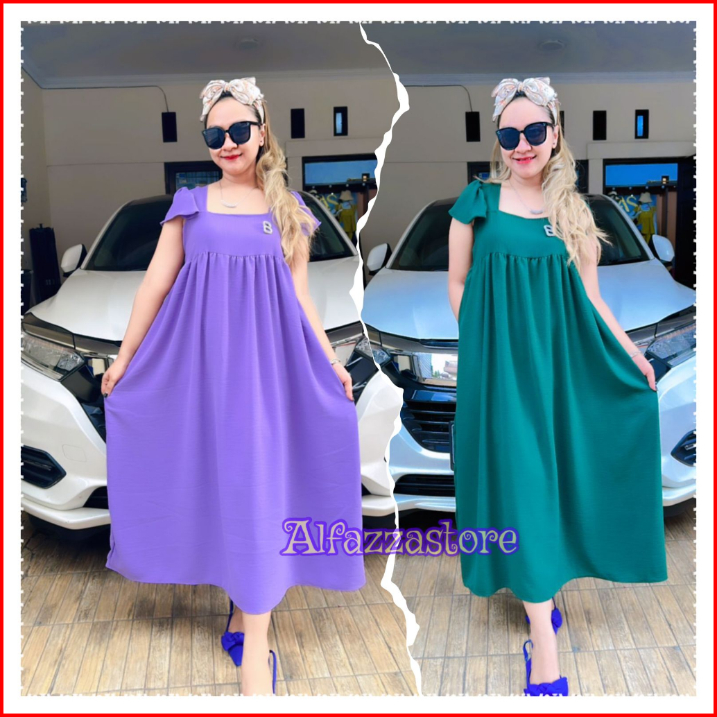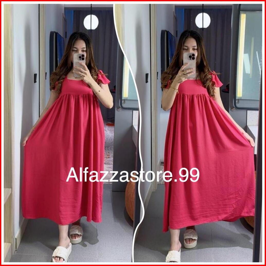 Alfazza Long Summer Dress Ruffle Babydoll Crinkle Airflow Daster Jumbo Outfit Pantai Bumil Kekinian