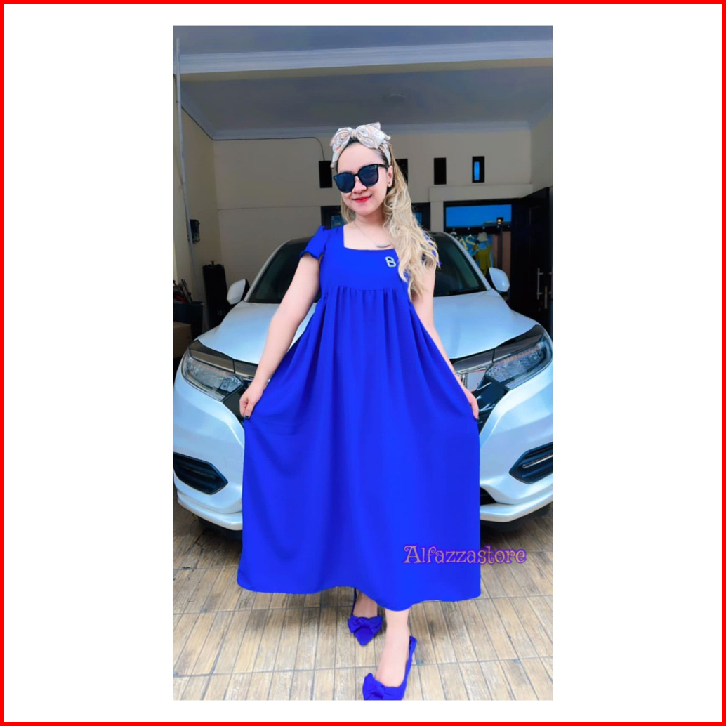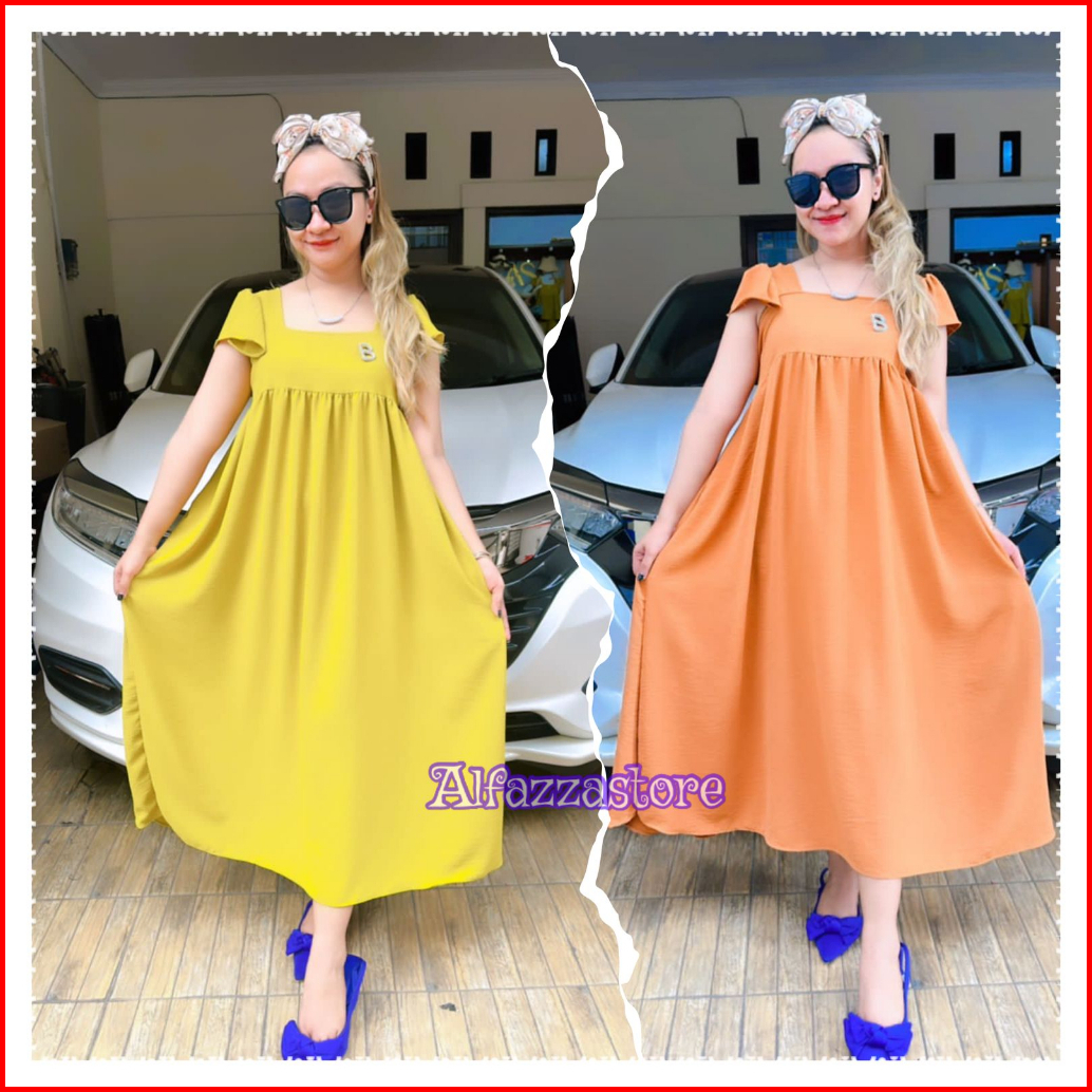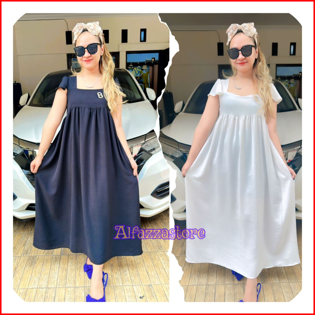 Alfazza Long Summer Dress Ruffle Babydoll Crinkle Airflow Daster Jumbo Outfit Pantai Bumil Kekinian