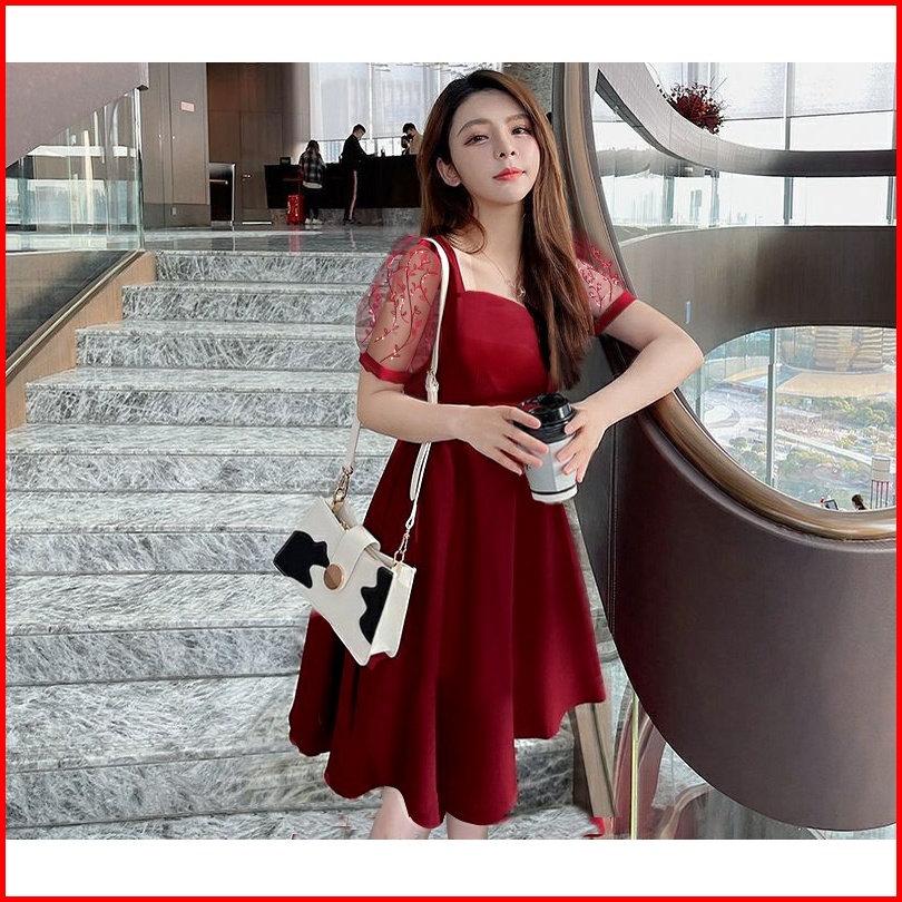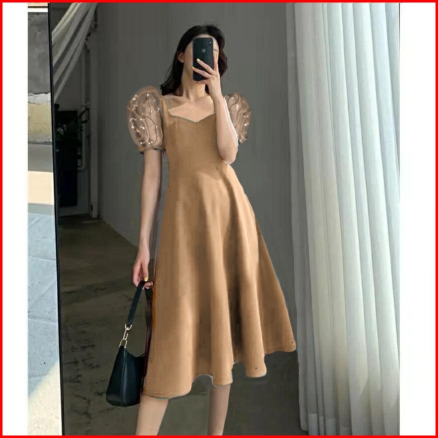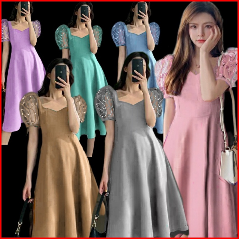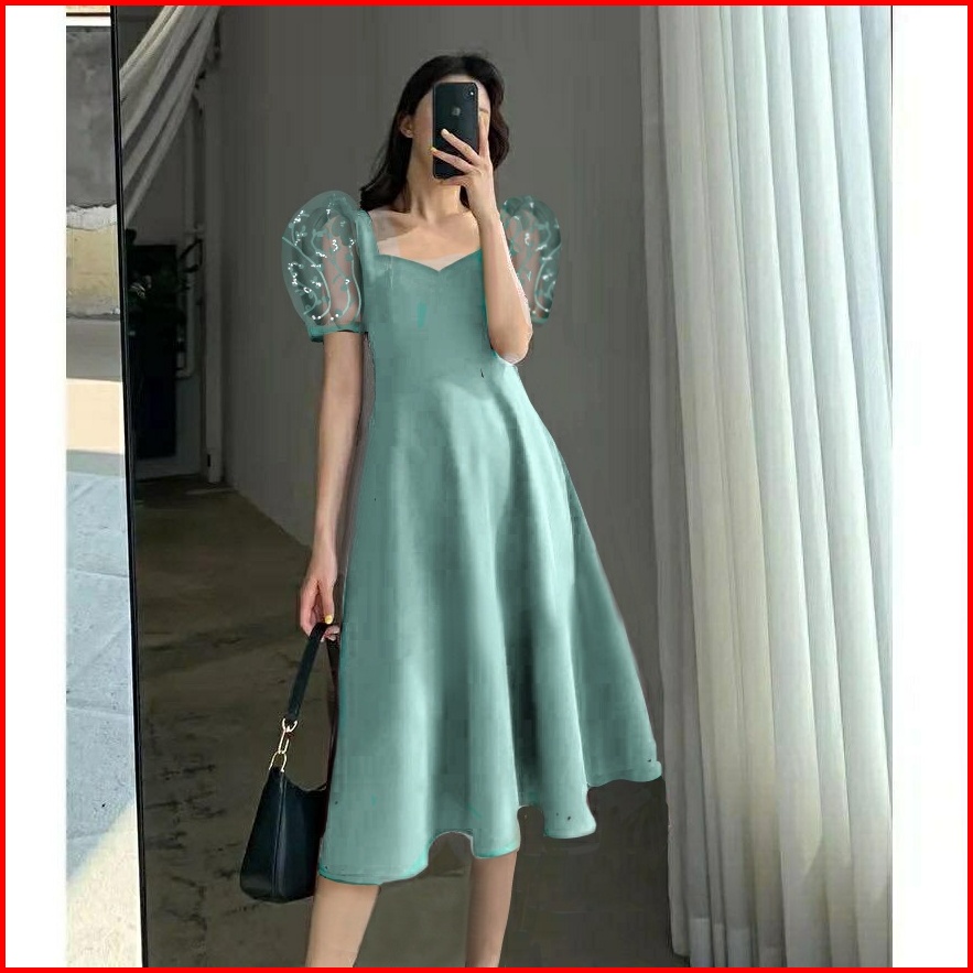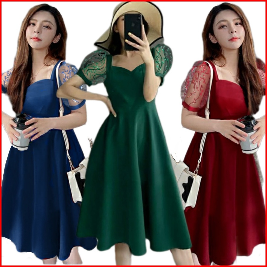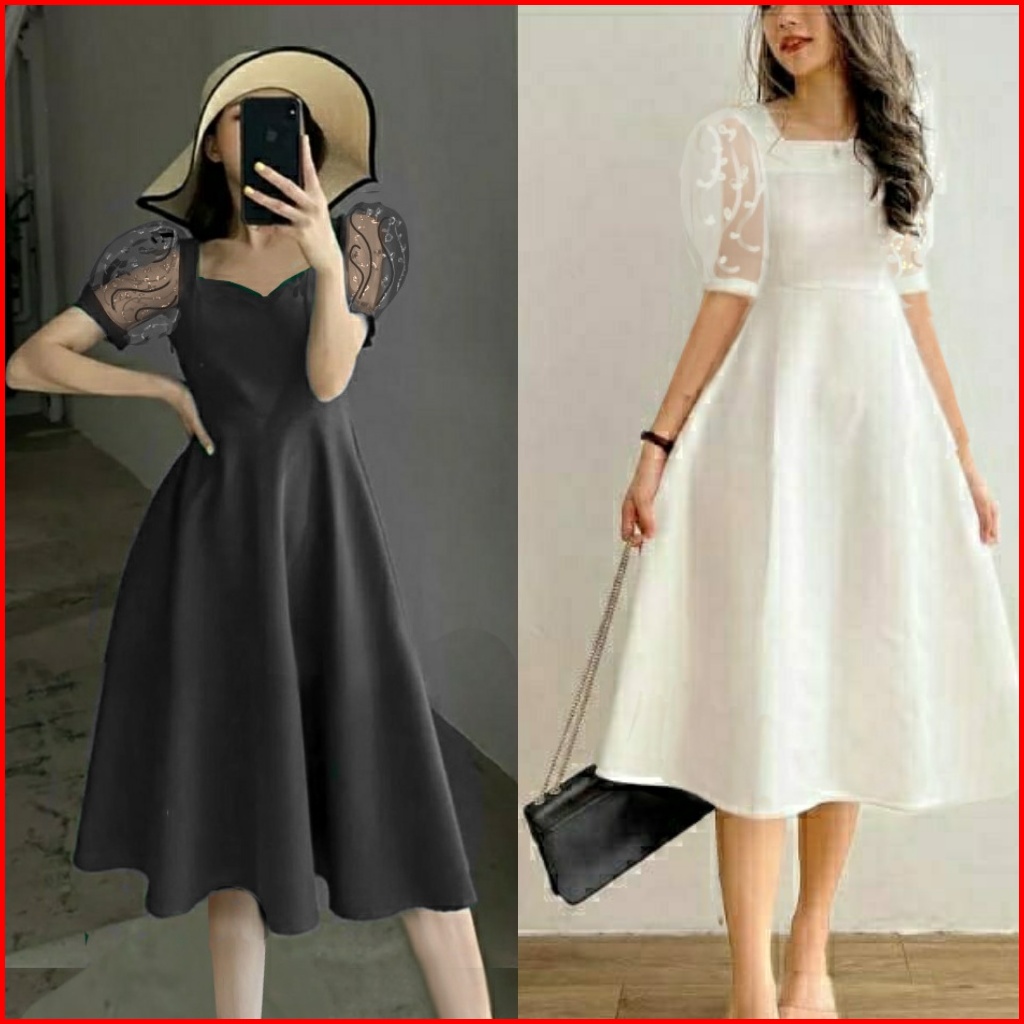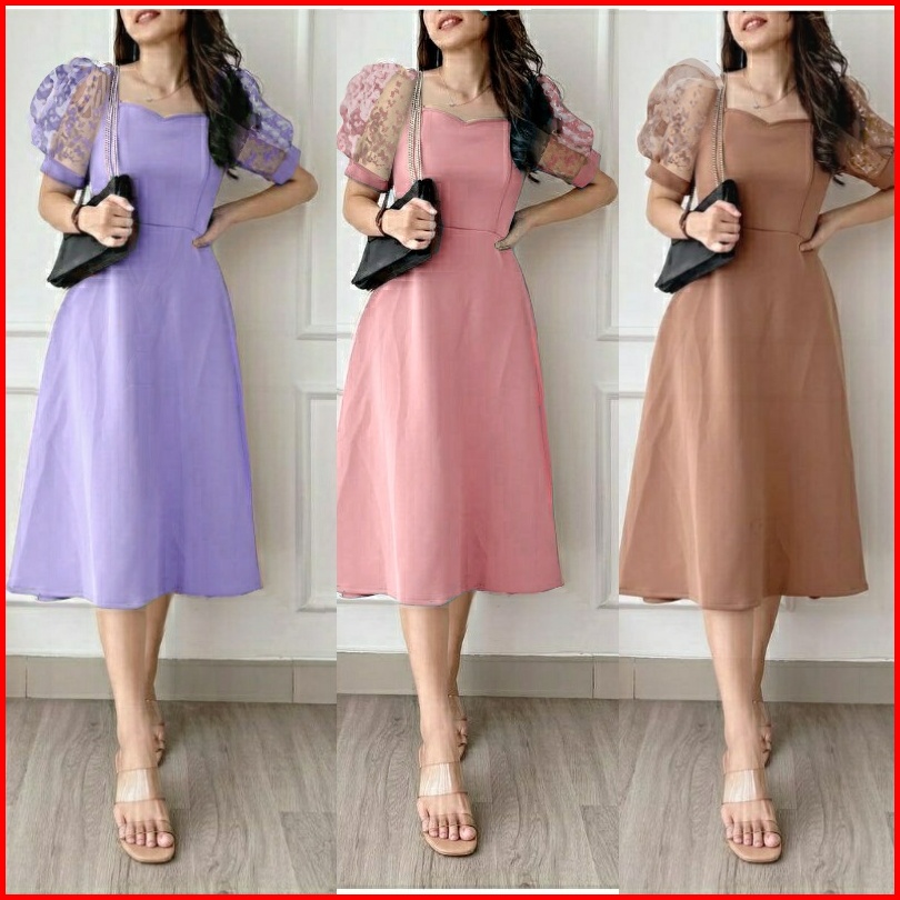 Dress Emily Scuba Lengan Tile Mutiara Korean