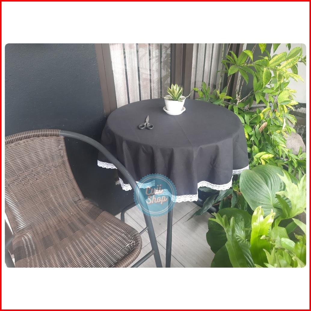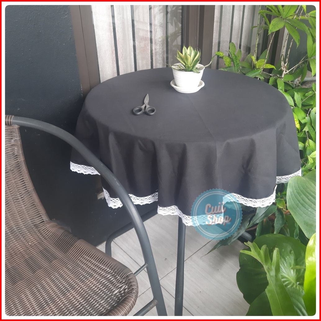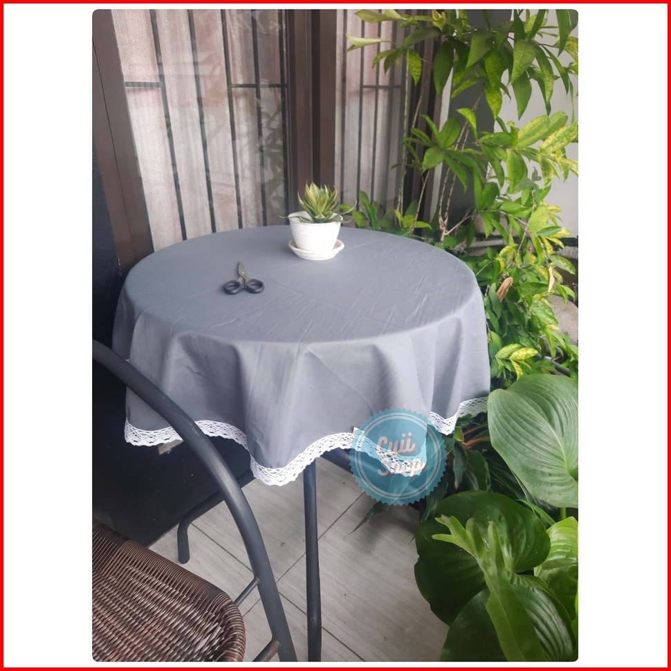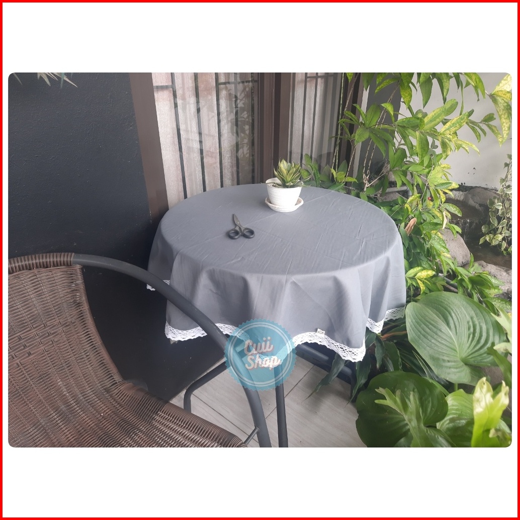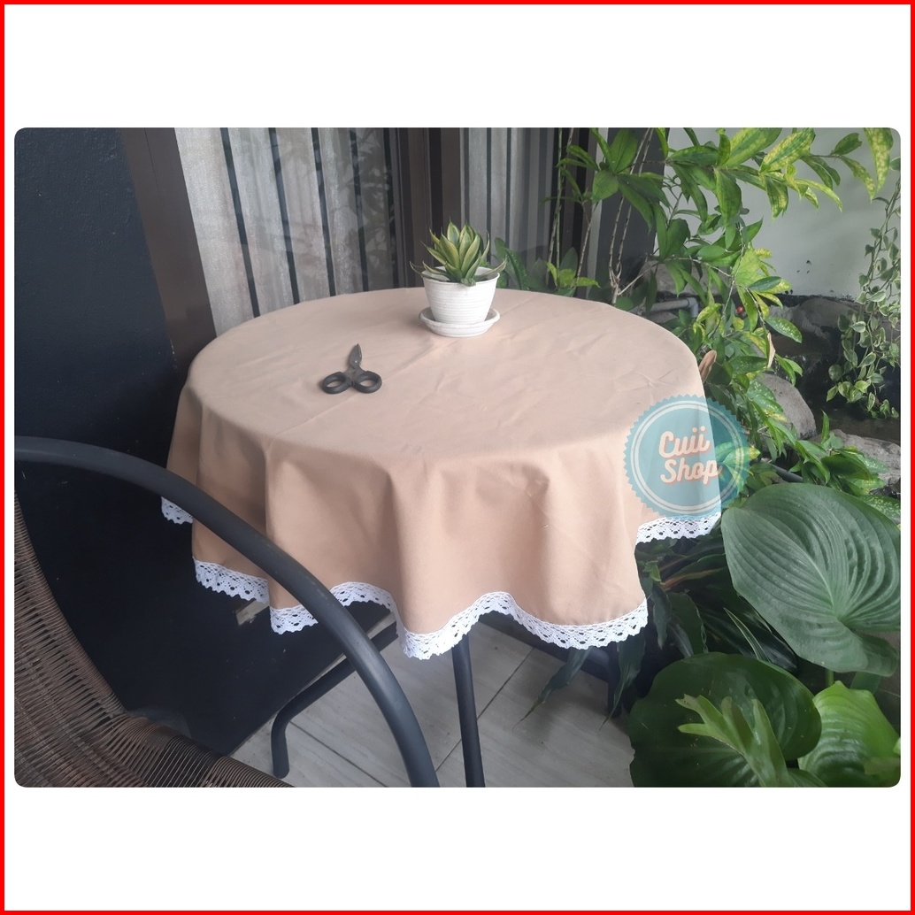 Taplak Meja Bulat Kain Polos Keliling Renda Rajut Ukuran Kecil Dan Besar Elegan Kekinian Bahan Katun Polymicro By Cuii S