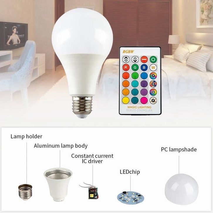 FREE ONGKIR / Lampu Bohlam LED RGBW Remote Control 16 Warna Dimmable 7W