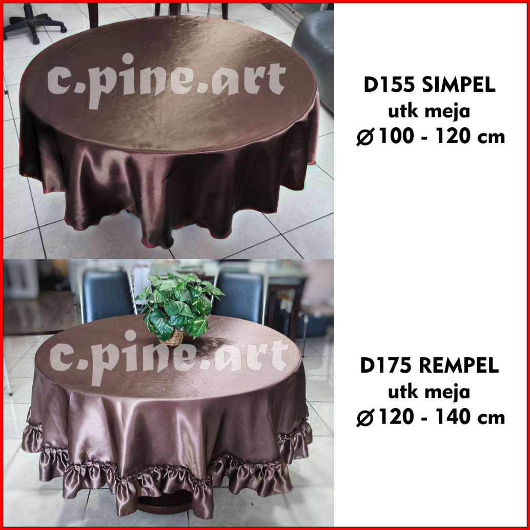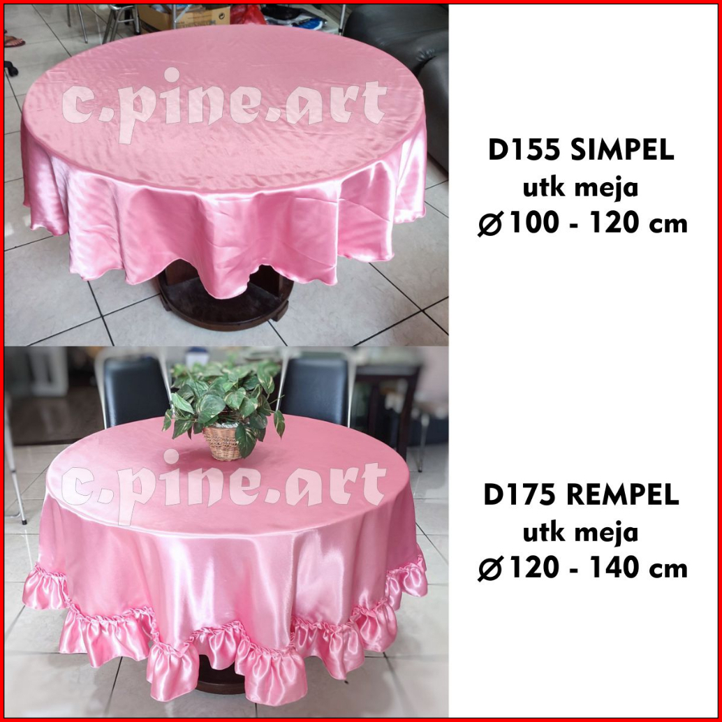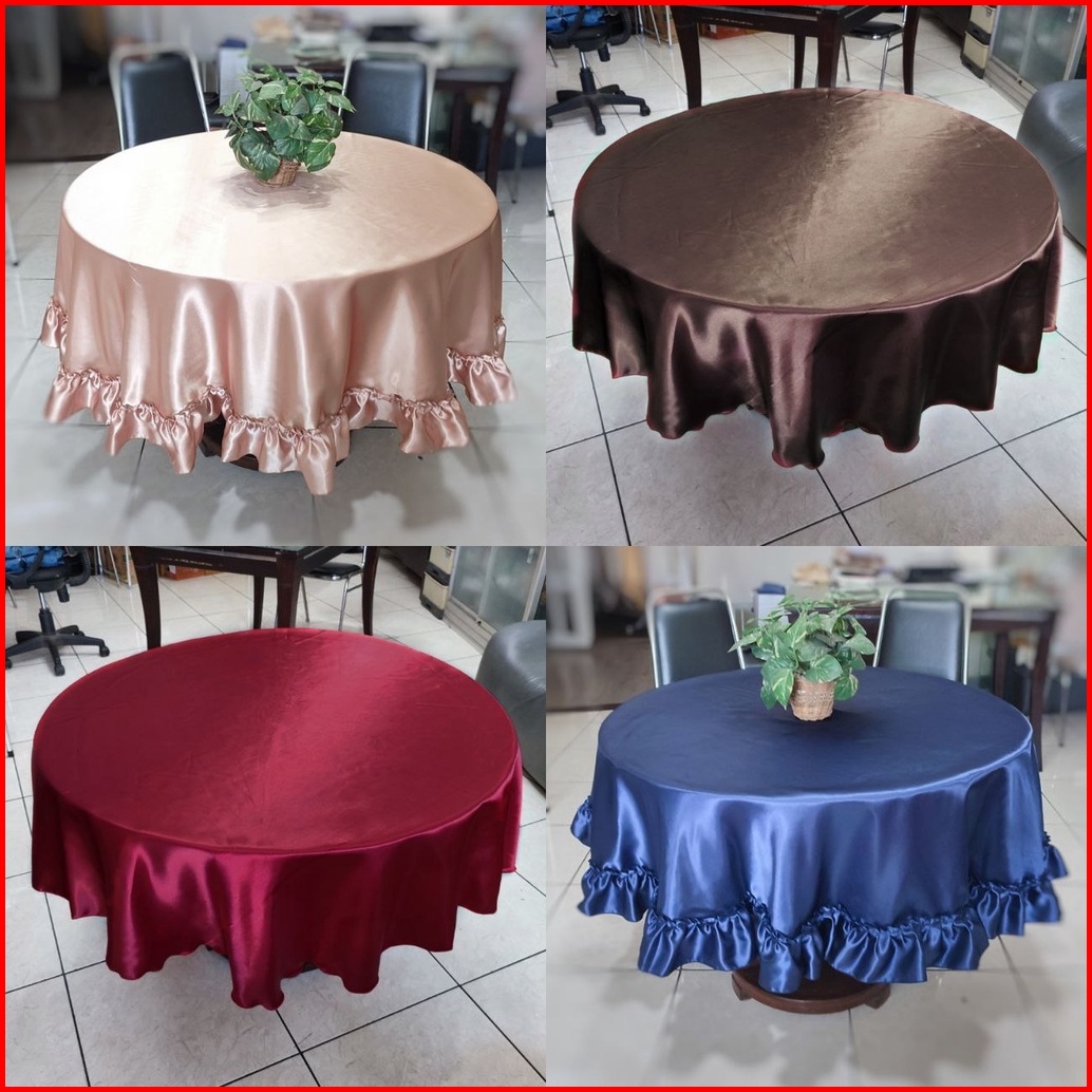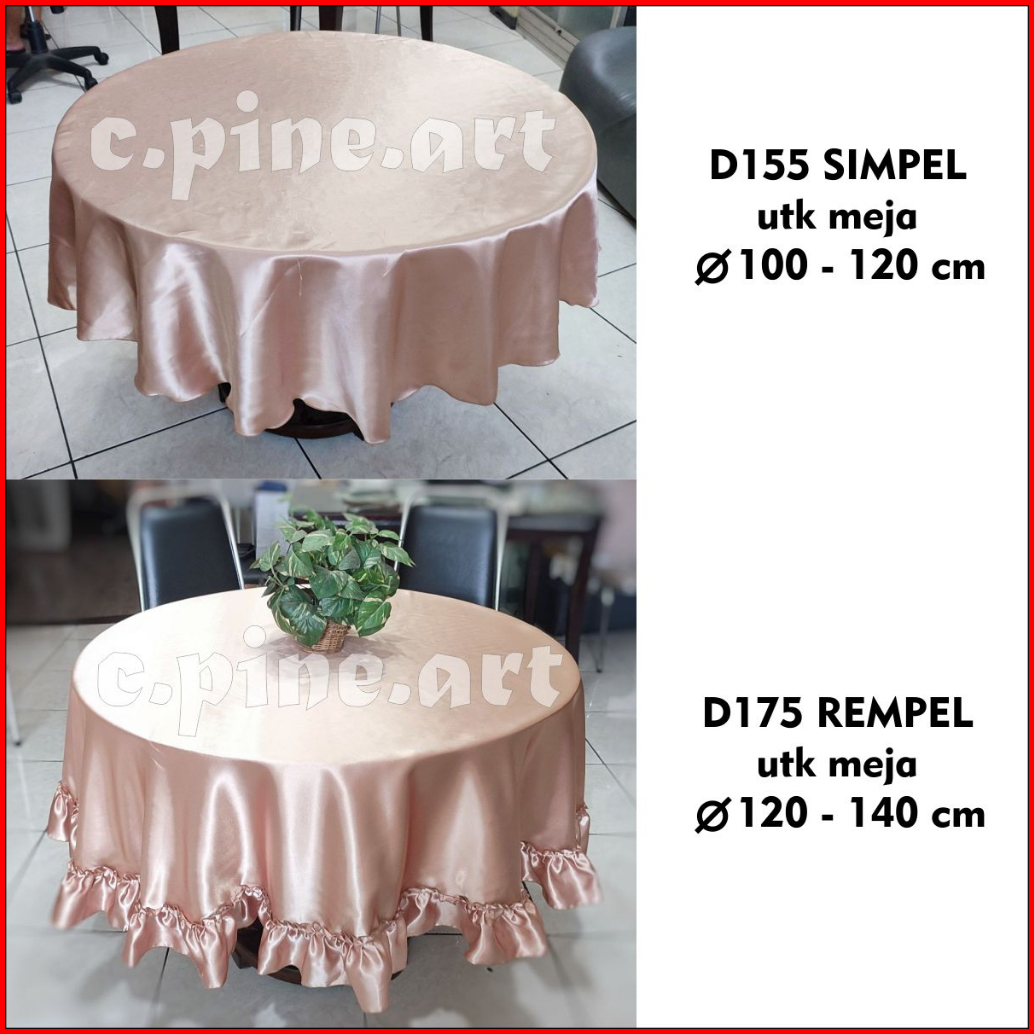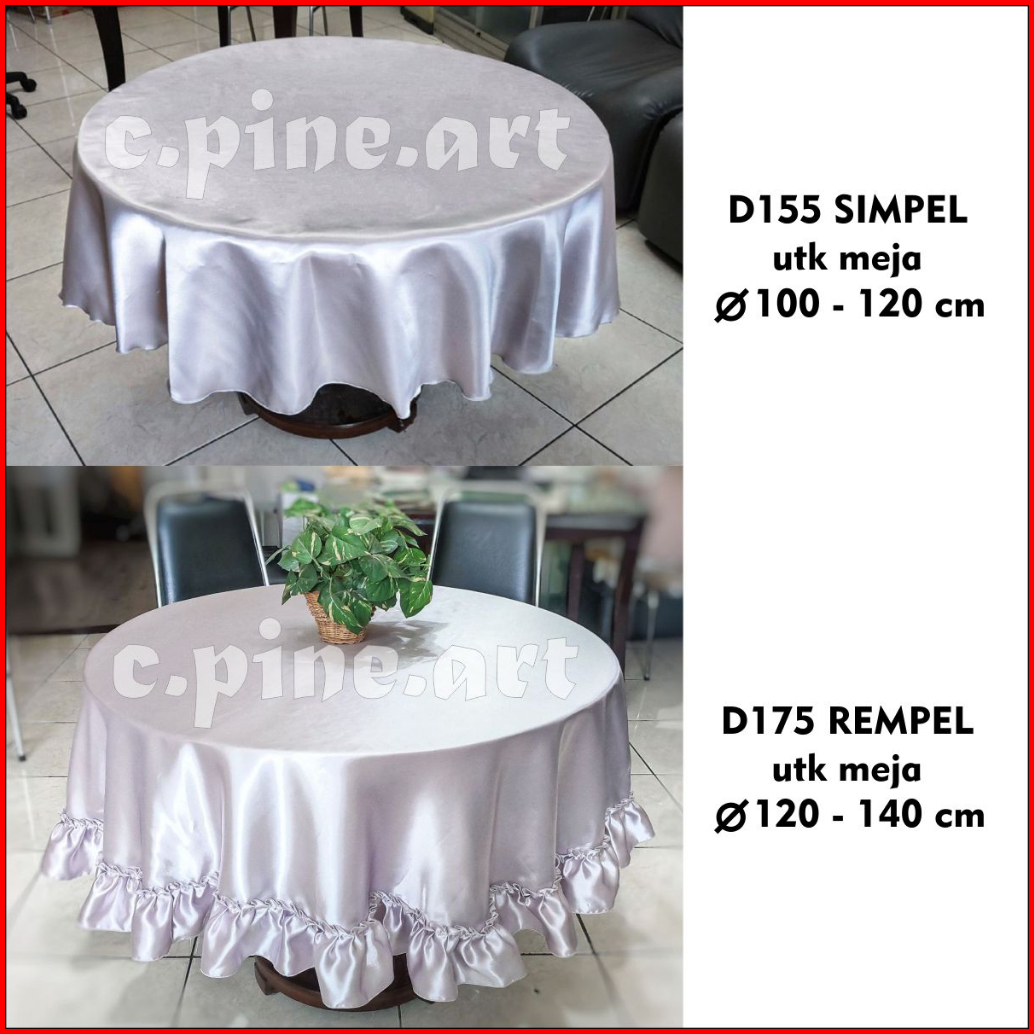 Taplak Meja Makan Bundar Bulat Polos Satin Mewah Ukuran Besar Diameter 150 - 155 Cm 175 Cm 77 Cm