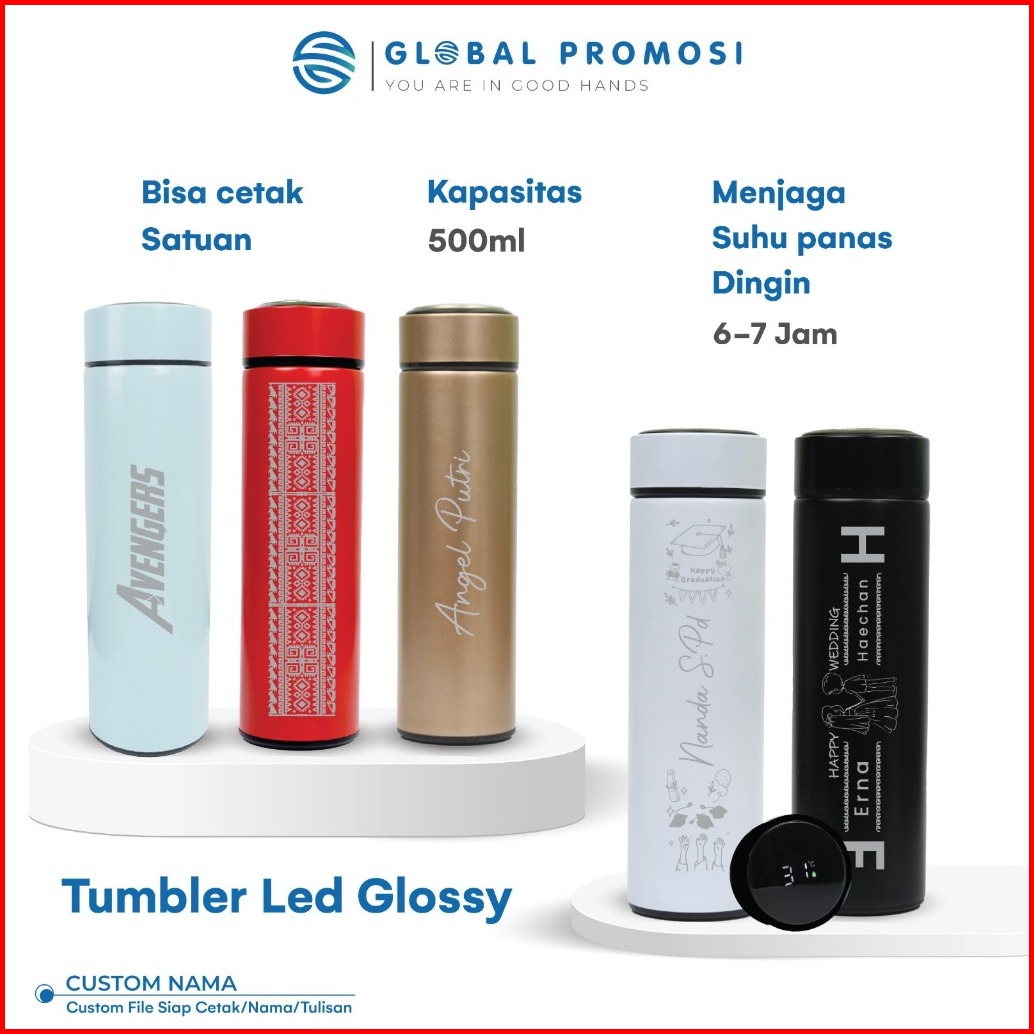 Custom Tumbler Smart Led Glossy Suhu Temperatur Botol Minum Stainless Cetak Laser Grafir