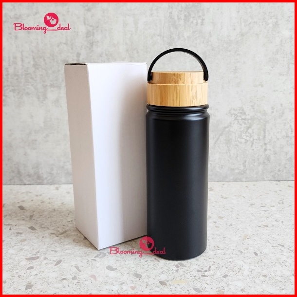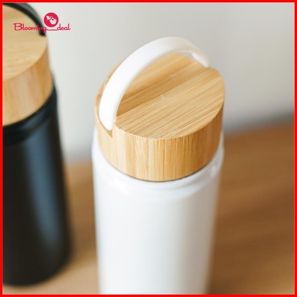 Tumbler Termos Stainless Steel Tutup Bambu Dengan Handle 550ml Hn223