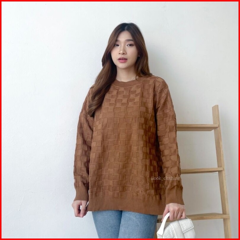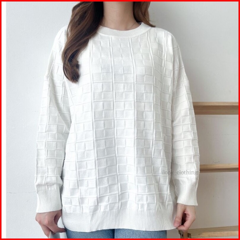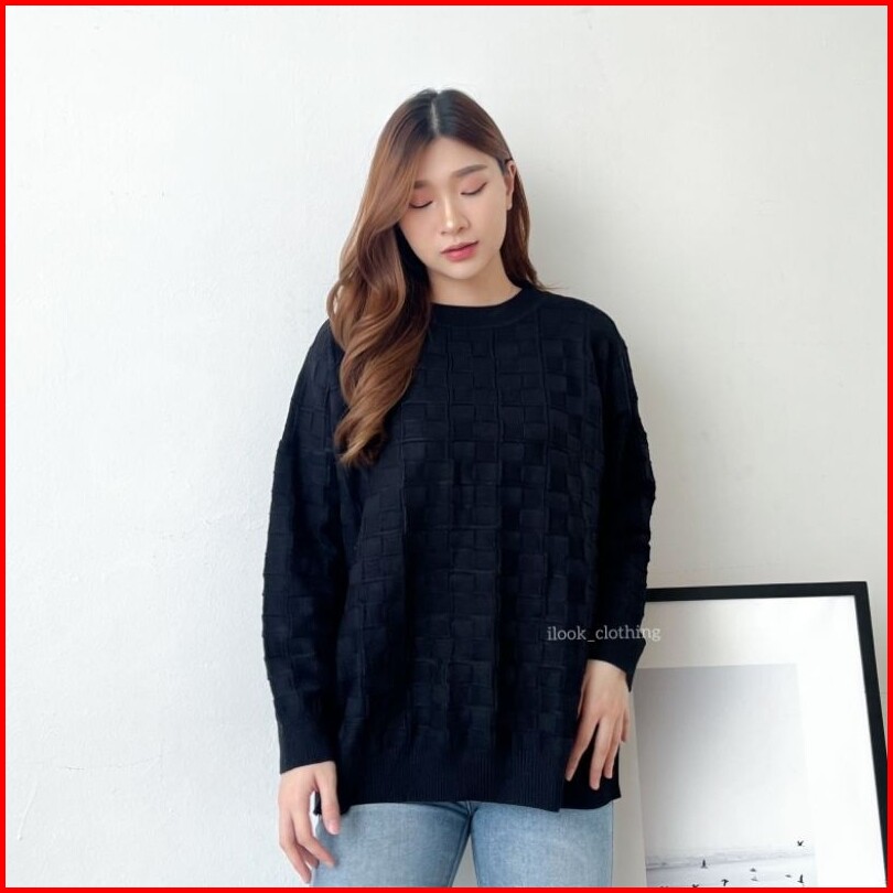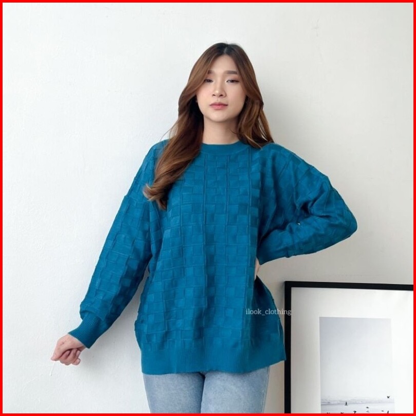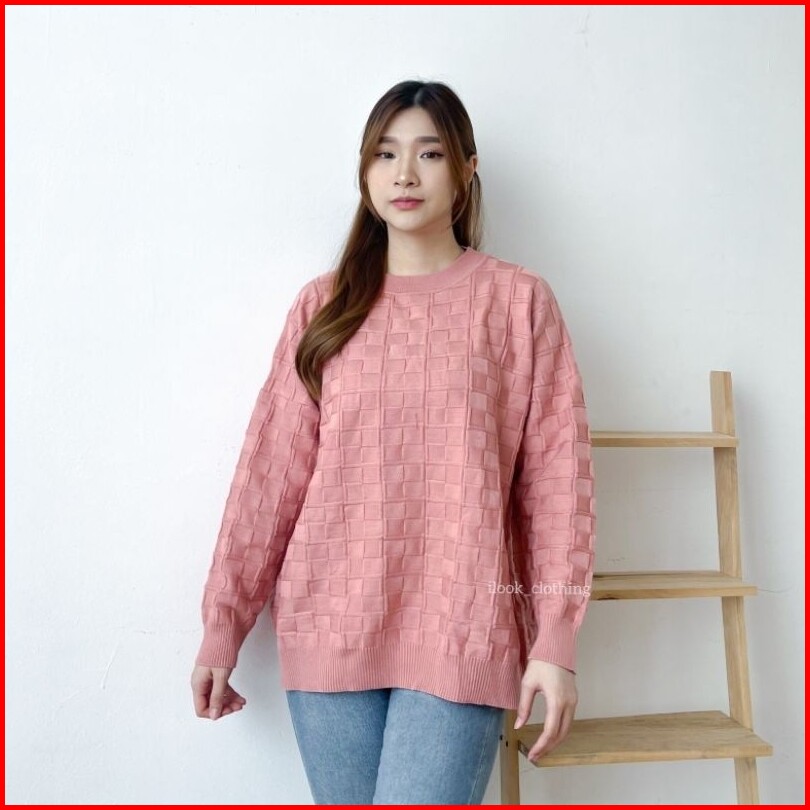 Sora Oversize Tops Atasan Rajut Katun Halus Adem Tangan Panjang Wanita Sweater Cewe Hijab Friendly