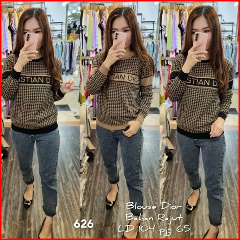 9185 Atasan Blouse Rajut Wanita Motif Bulu Blus Kaos Rajut Sweet Dreams Real Pict Blus Rajut Fit To Xl