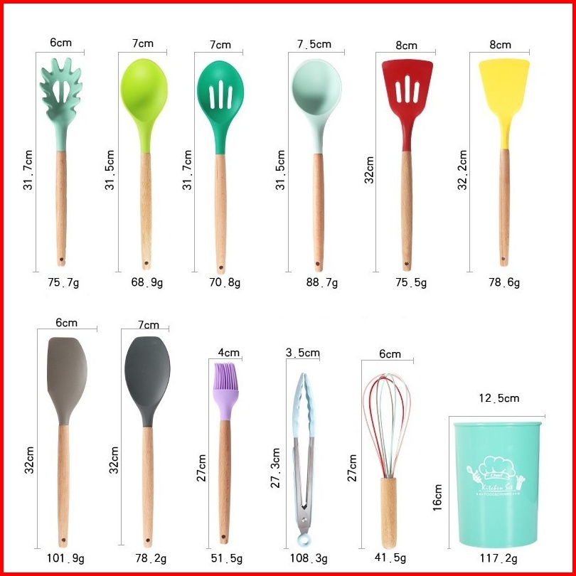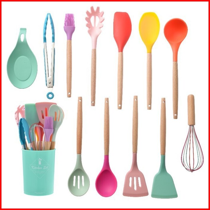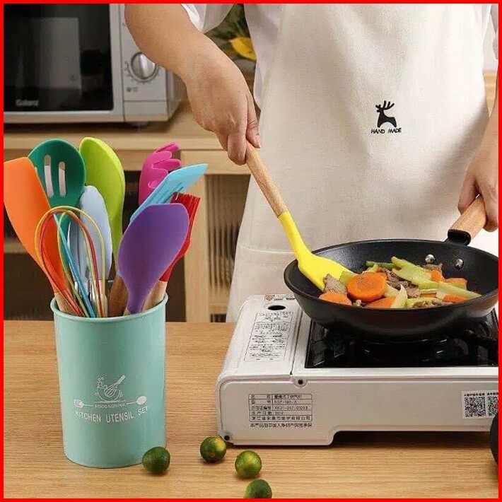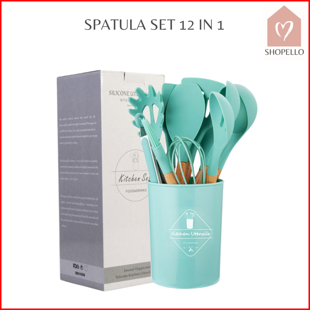 Shopello Spatula Silikon Set 12 Peralatan Masak Sutil Silikon Tahan Panas Anti Lengket