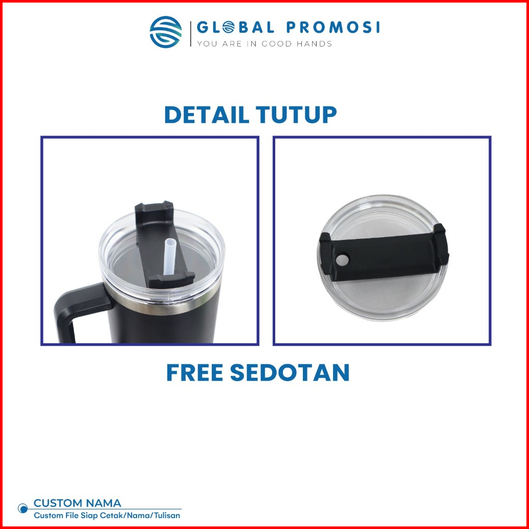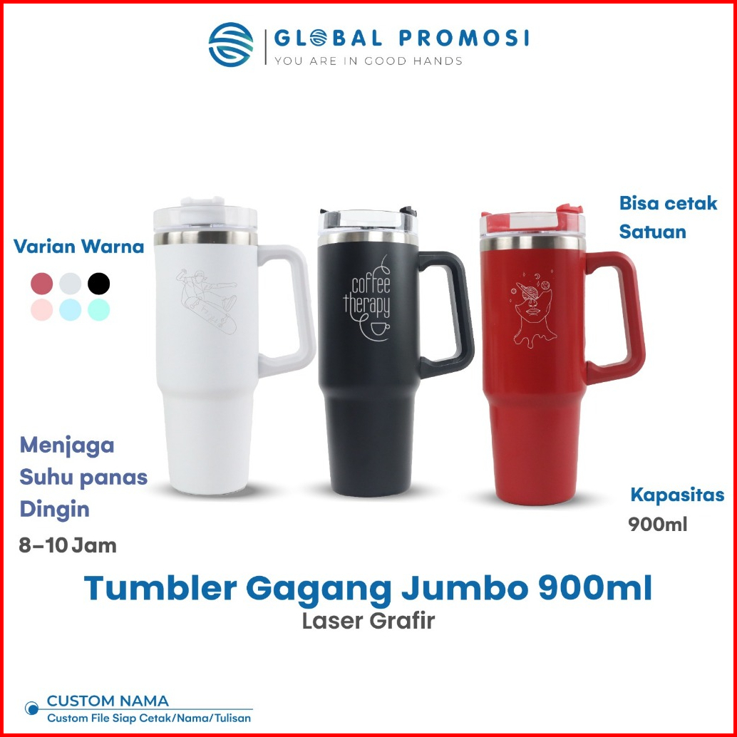 Tumbler Gagang Jumbo 900ml Stainless Steel Custom Laser Grafir Cetak Nama Logo Desain Souvenir