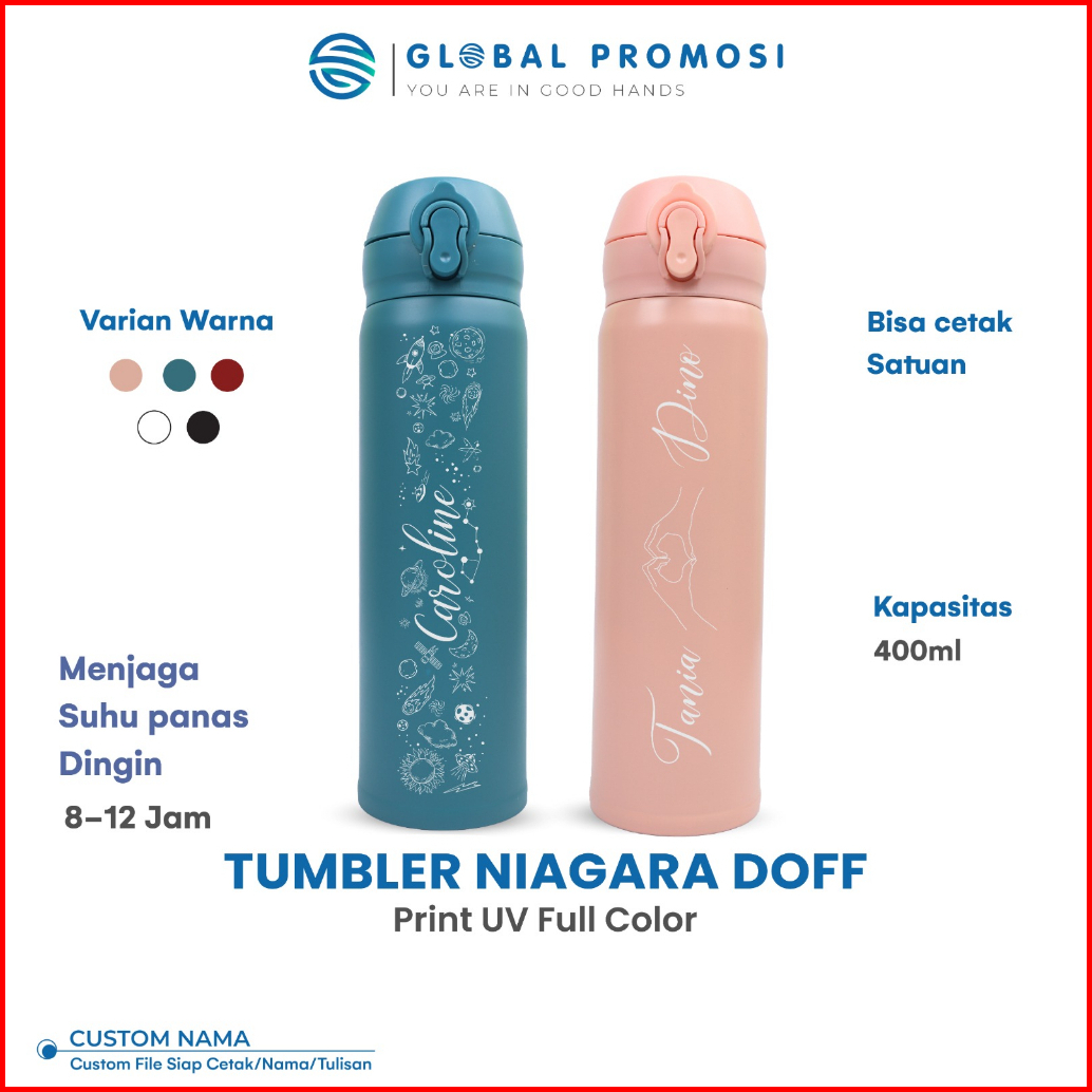 Custom Tumbler Niagara Doff 400ml Cetak Nama Laser Grafir Logo Souvenir