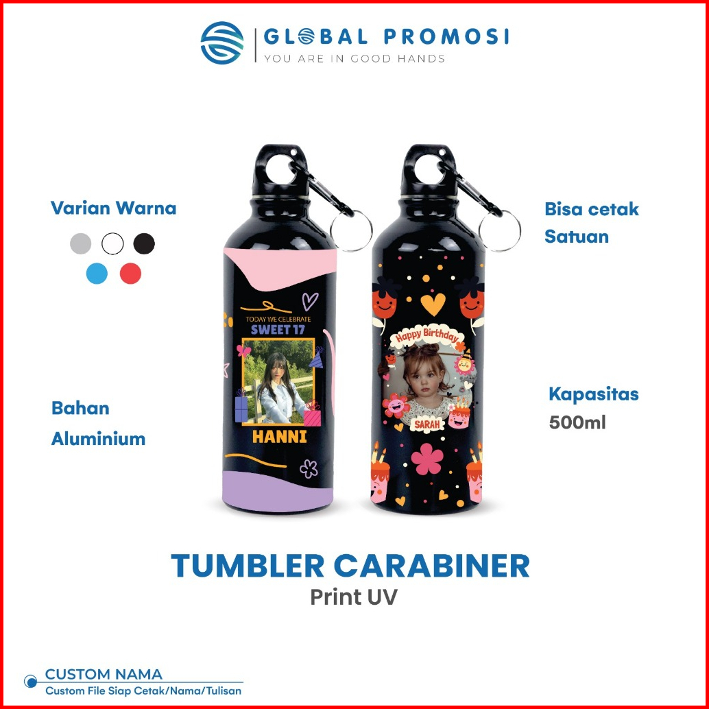 Custom Tumbler Sport Sepeda Event Souvenir Run Bottle Carabiner 500ml Cetak Uv Print Nama Logo Karakter