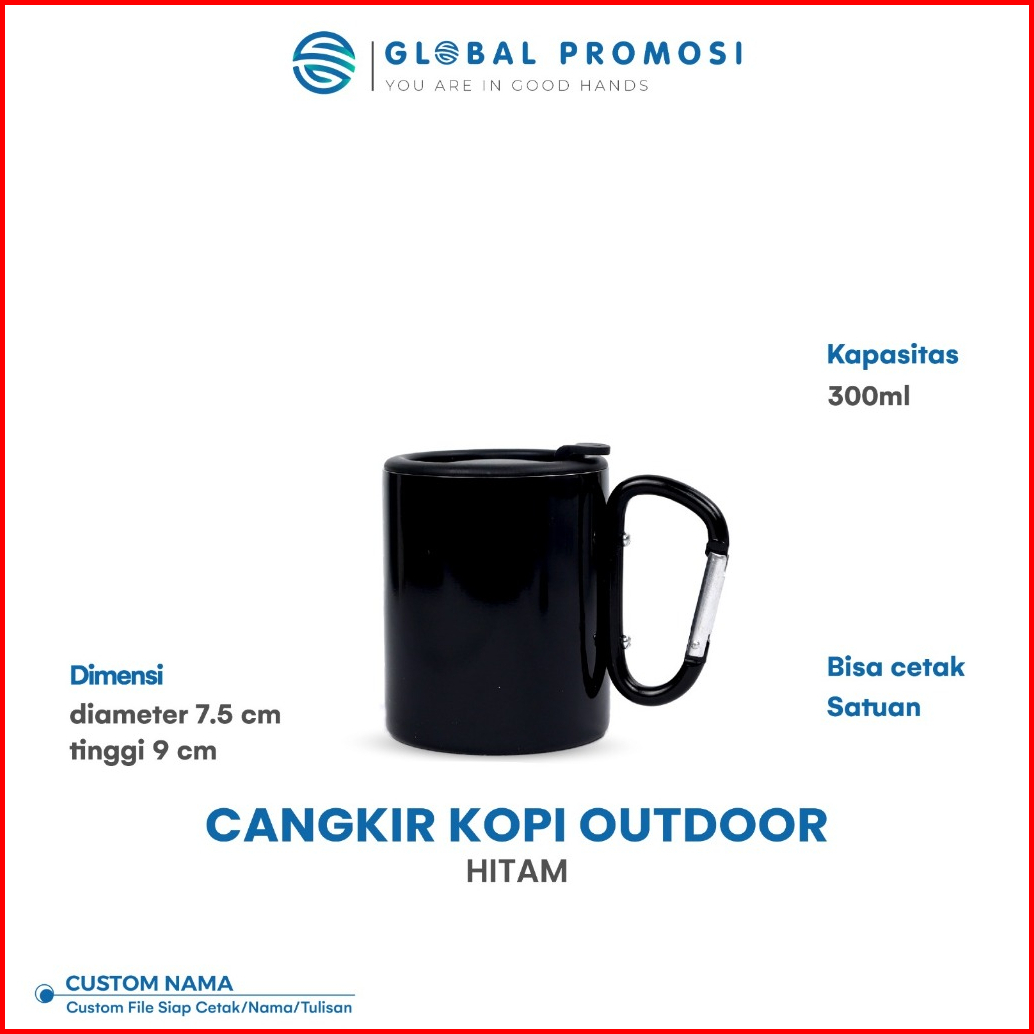 Custom Mug Cangkir Carabiner 280ml Gelas Kopi Stainless Laser Grafir Cetak Nama Logo Desain