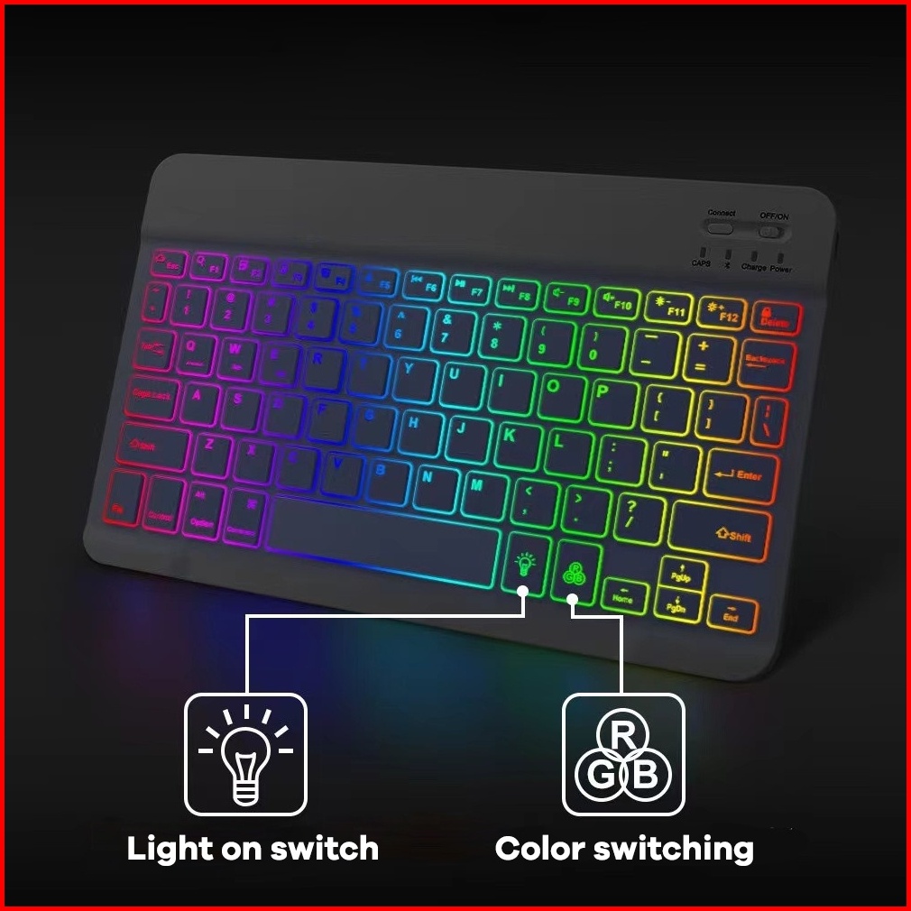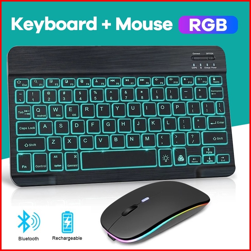 Bluetooth Keyboard Wireless 10 Inch Led Colorful Mouse Wireless Silent Plus Combo For Ipad Samsung Xiaomi Phone