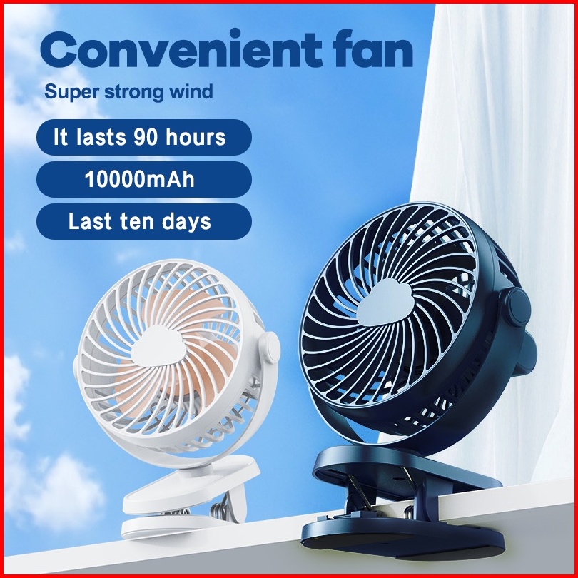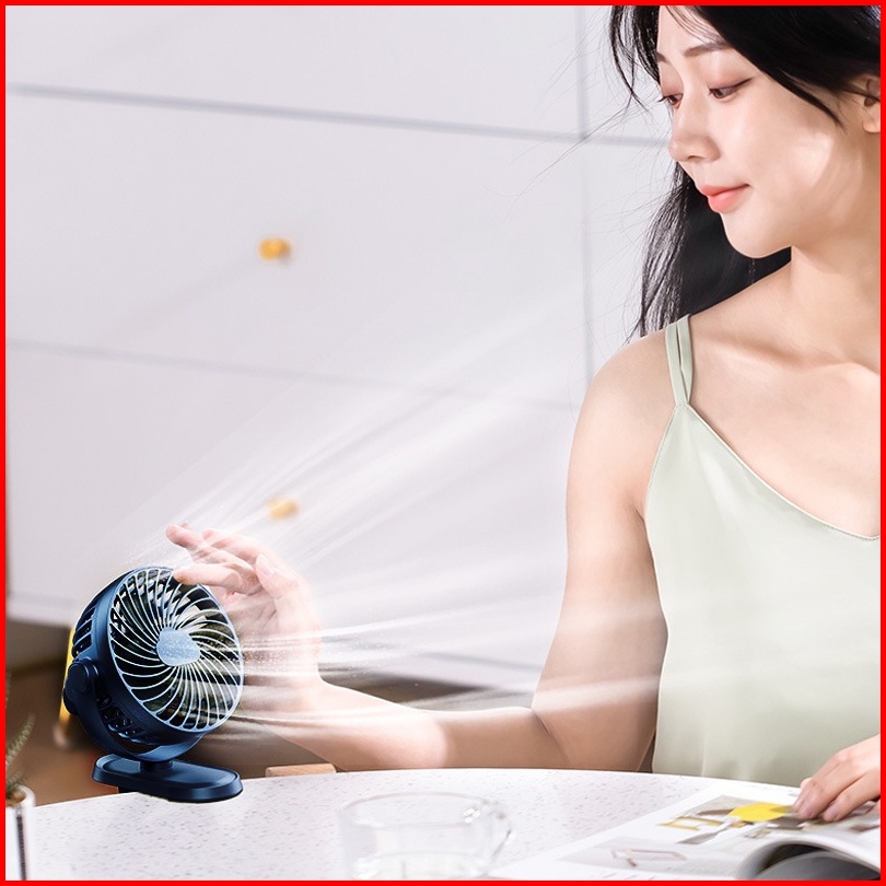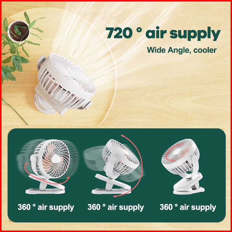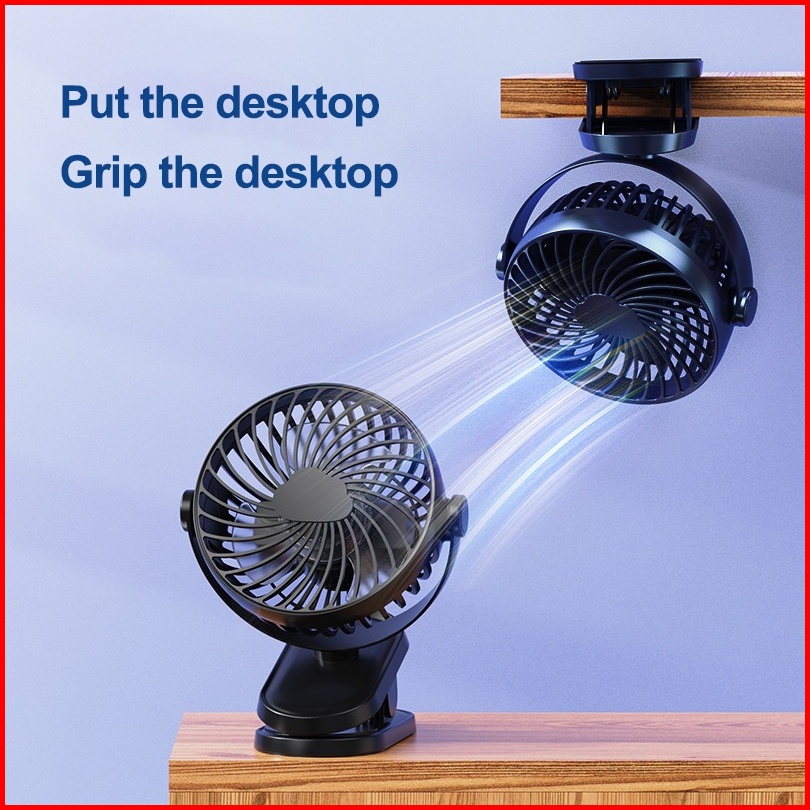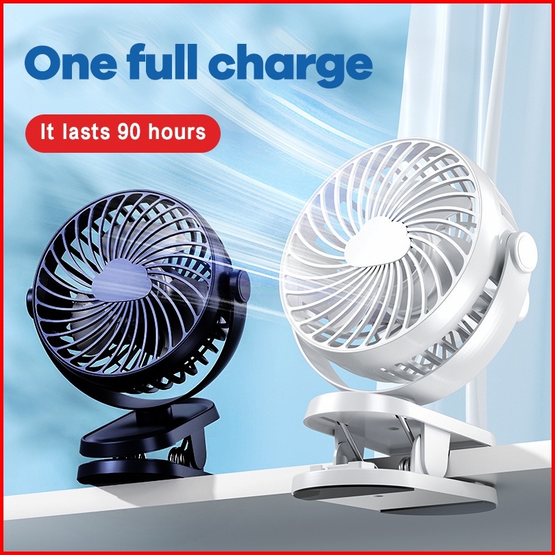 Kipas Portable Rechargeable 3-speed Mini Fan Rotating Kipas Angin Meja Mini Jepit Portable Usb