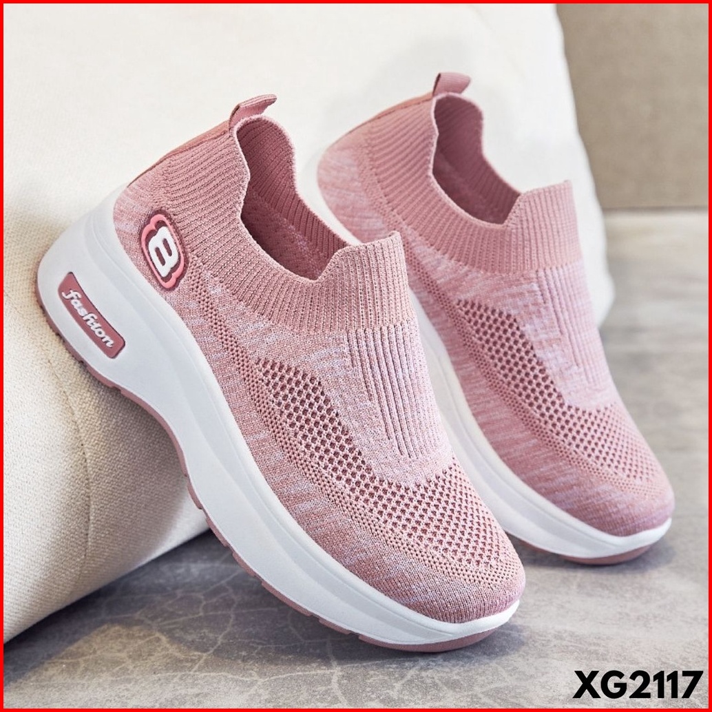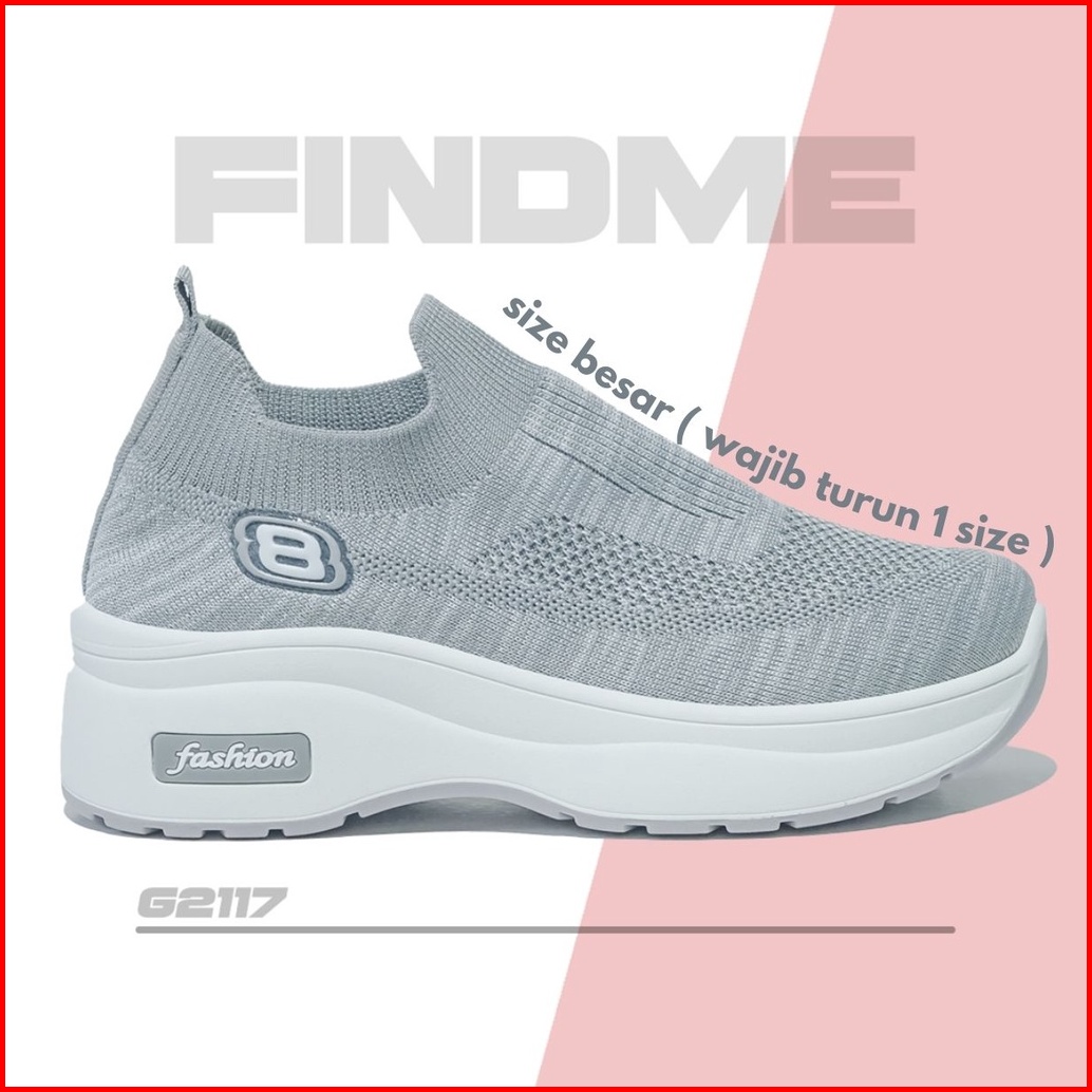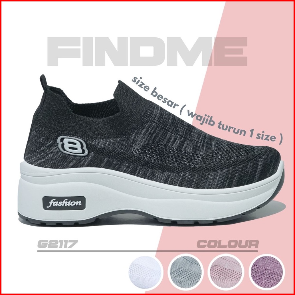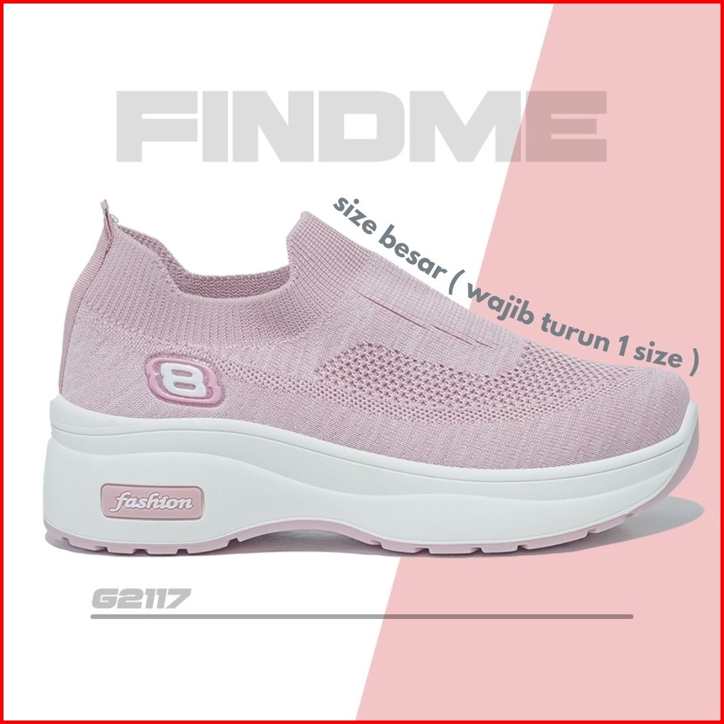 Findme Sepatu Wanita Slip-on Flyknit Berkualitas Highsole Daily Bagus Comfy Praktis G2117 Alice