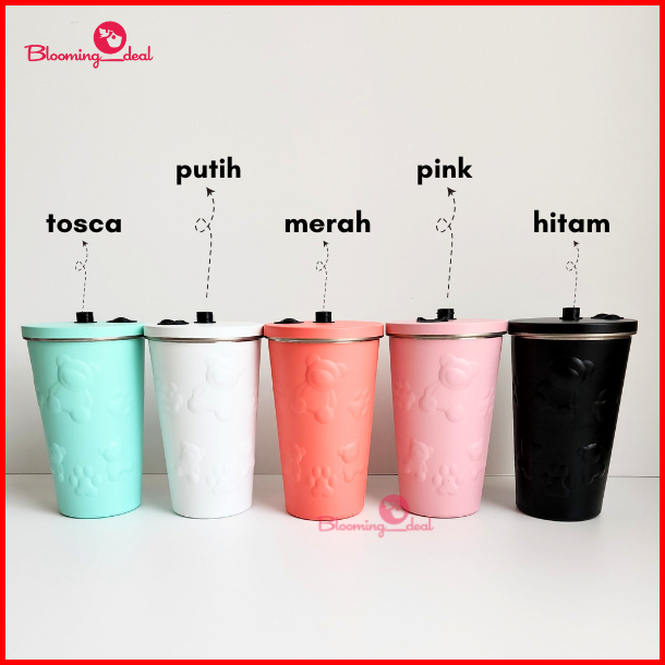 Tumbler Mug Kopi Geometris Bear Coffee Mug Dengan Sedotan 600ml Hn242 Hn243 Hn250