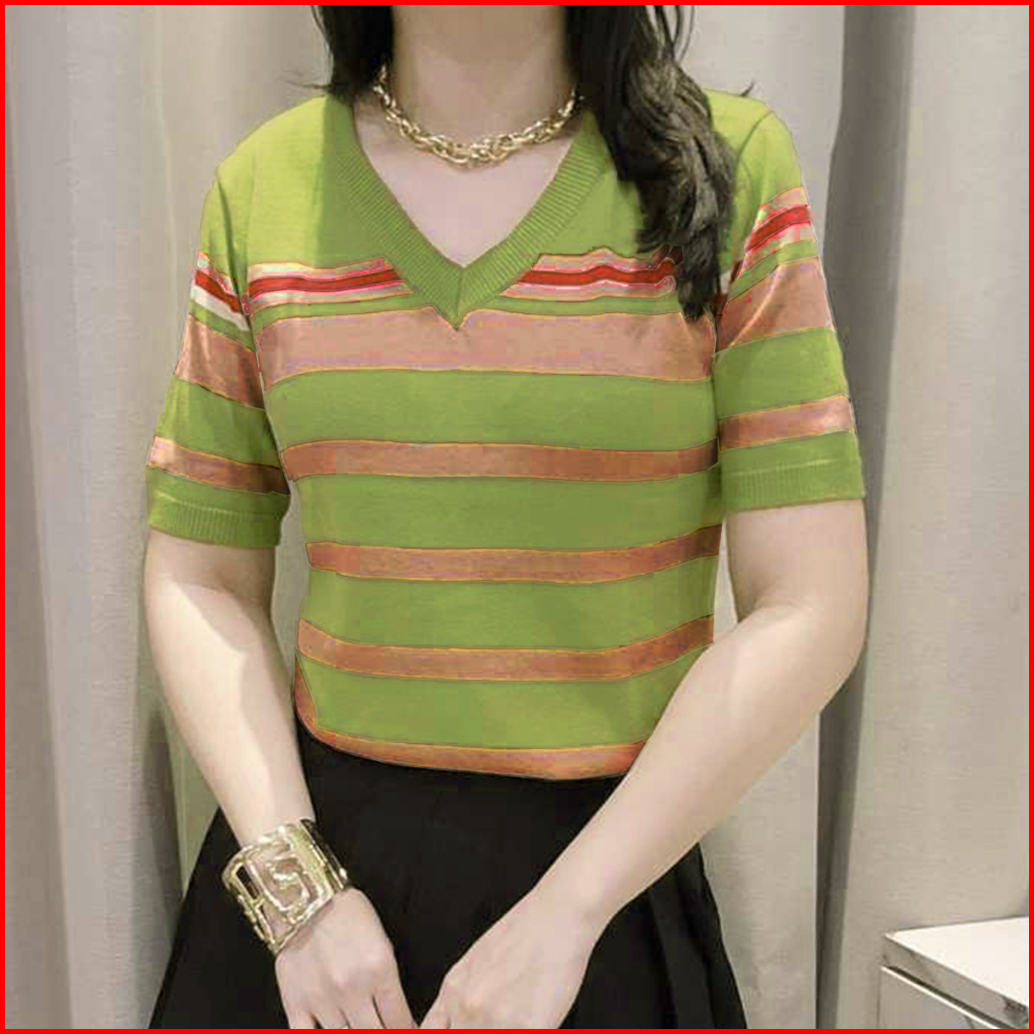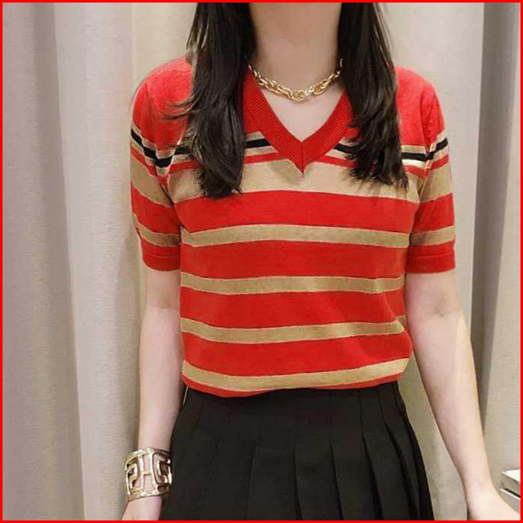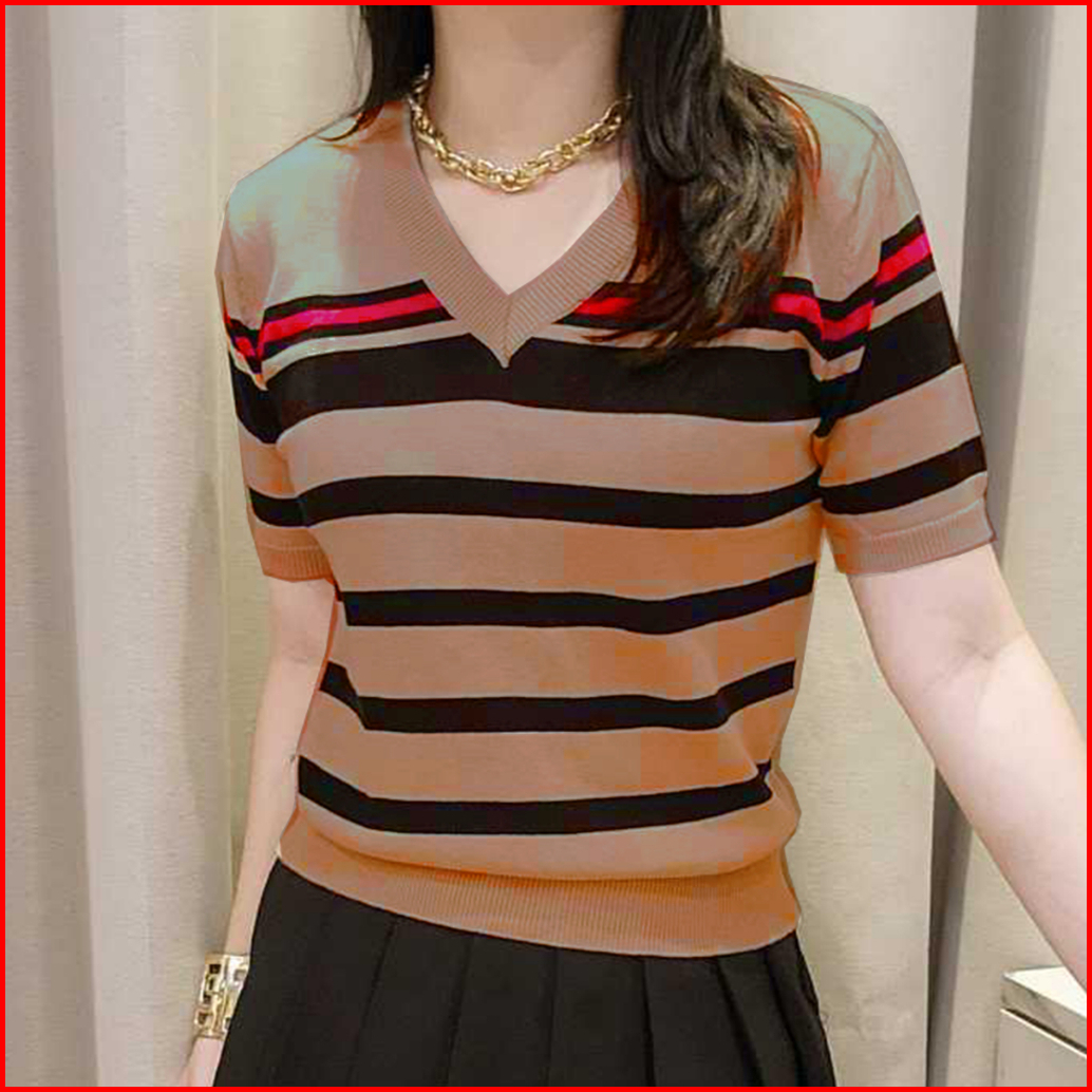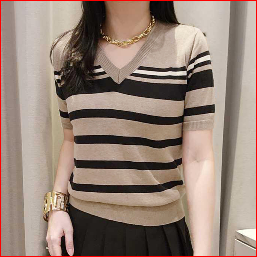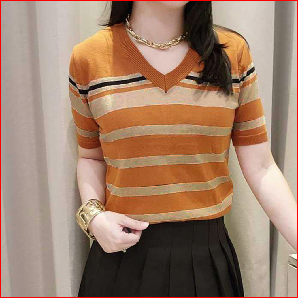 Zahra Atasan Baju Rajut Wanita Vente Top Strip T Shirt Rajut Polo Premium Wanita Korean Terbaru
