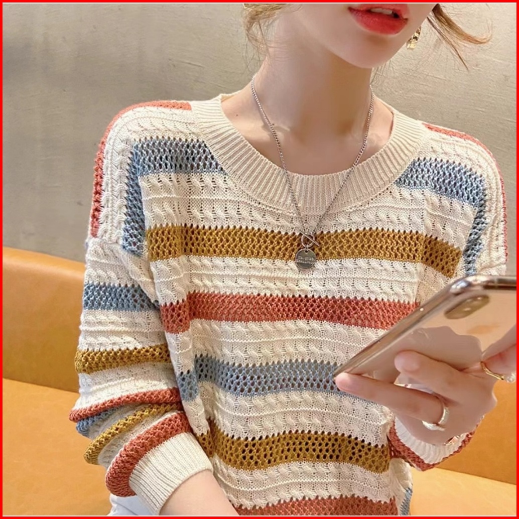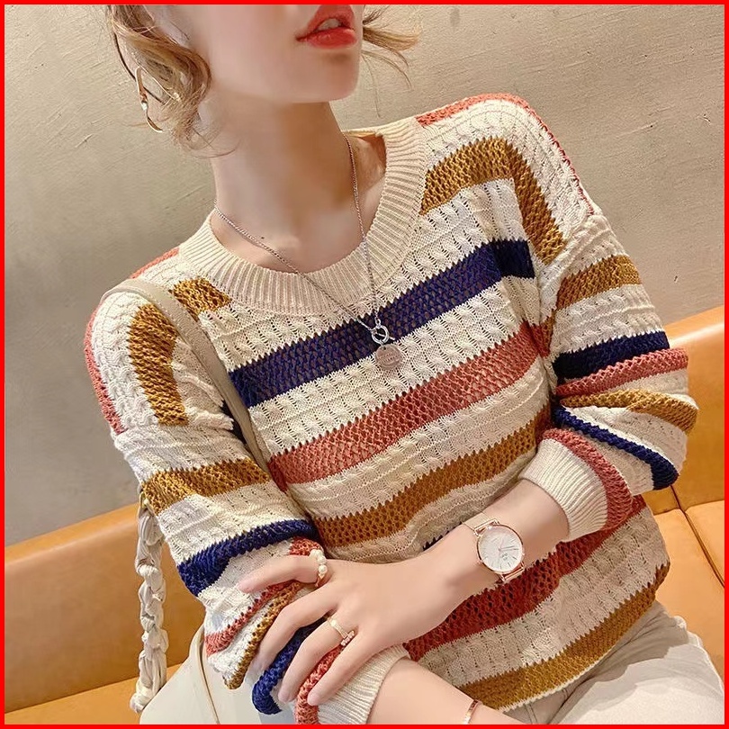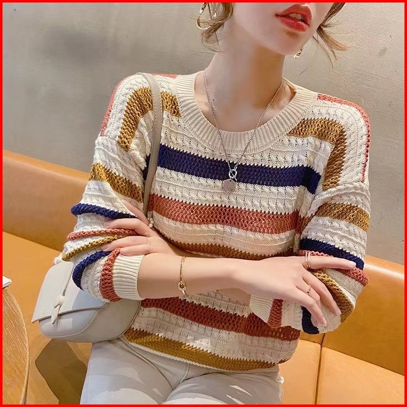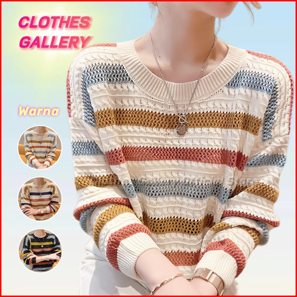 Clothesgallery Top Knit Import Sweater - Atasan Wanita Rajut Jaring Import Stripes