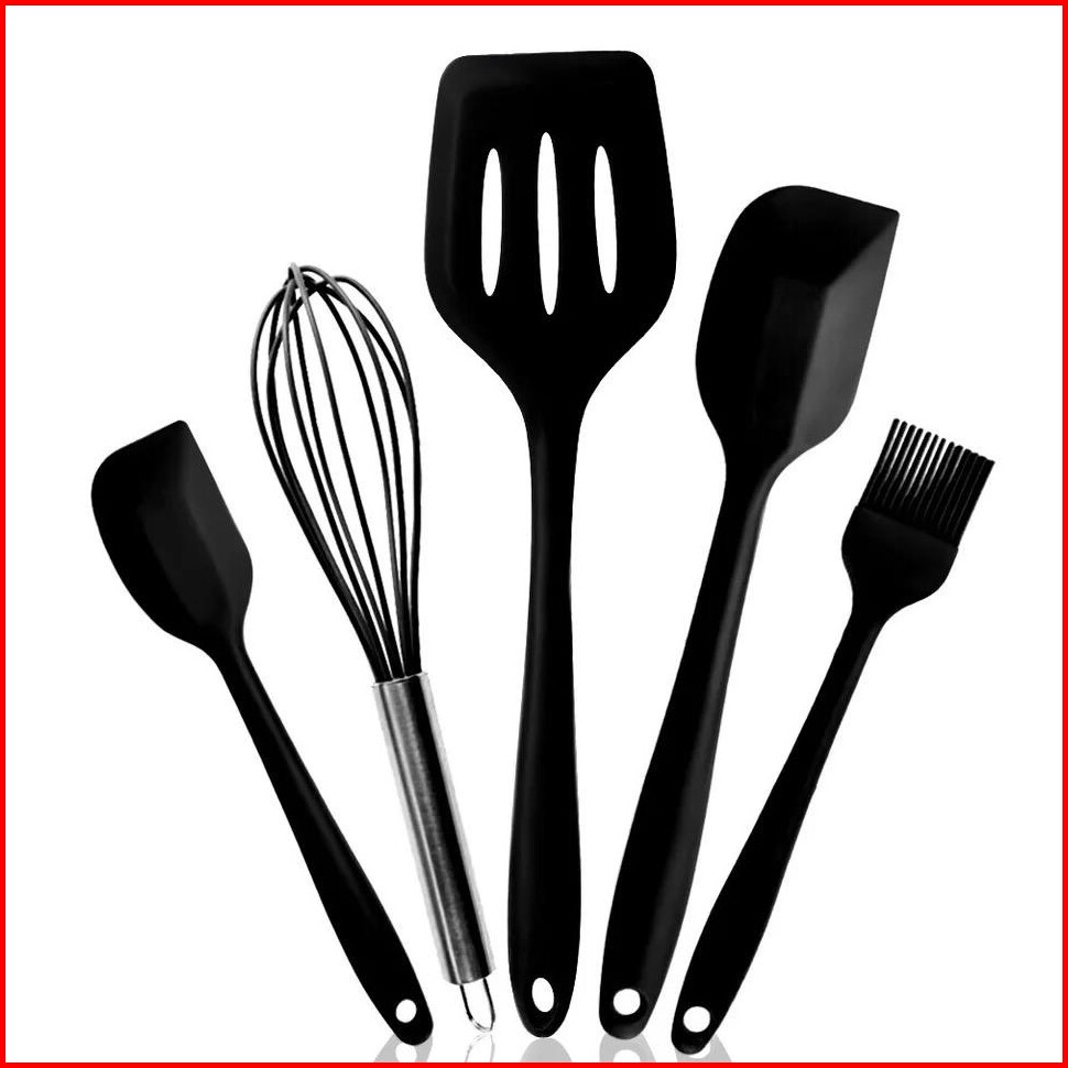 Set Alat Masak Silicone Isi 5 Pcs Spatula Sutil Silikon Food Grade Tahan Panas