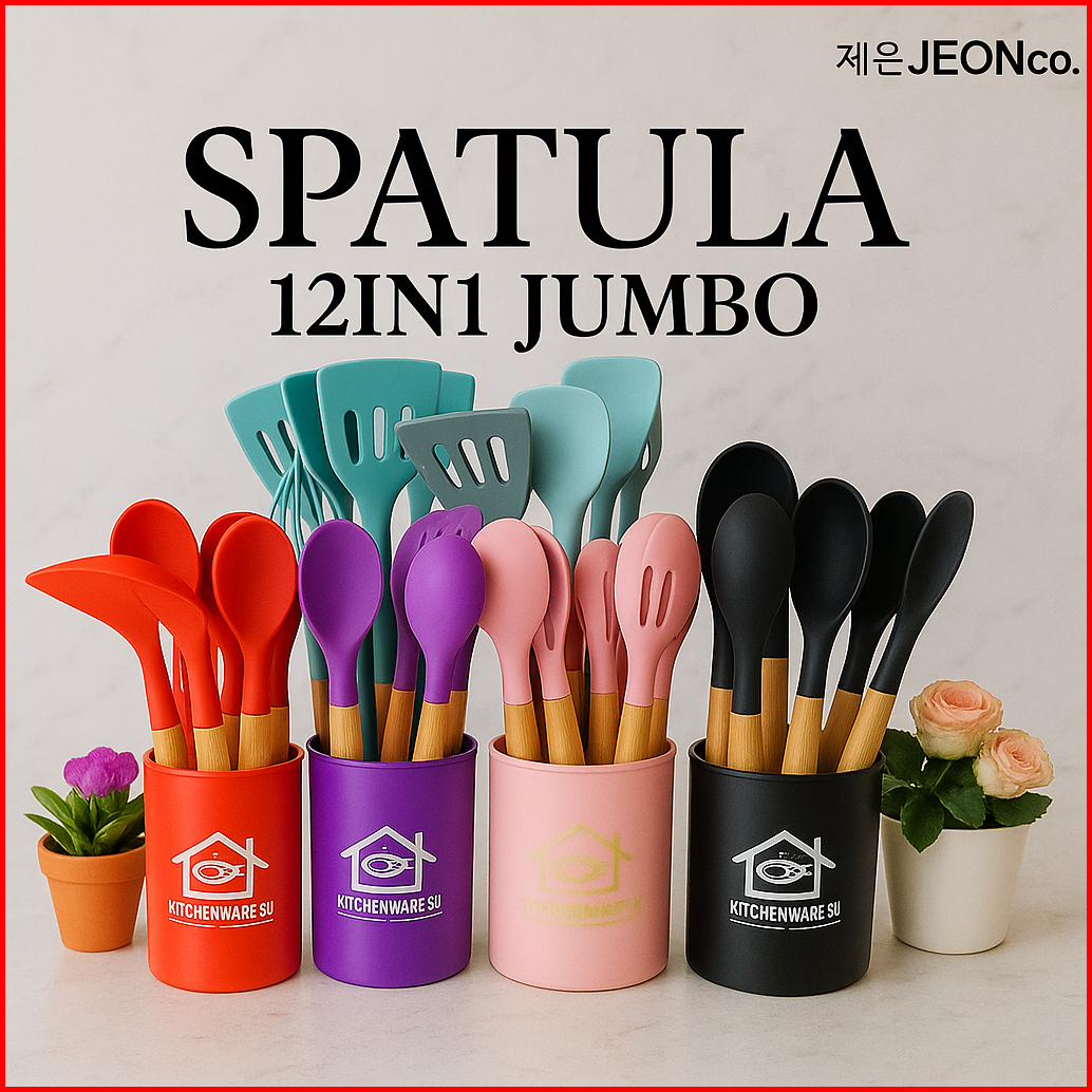 Spatula Silikon Jumbo 12in Kitchen Set Alat Dapur Tahan Panas Anti Lengket Peralatan Masak Serbaguna