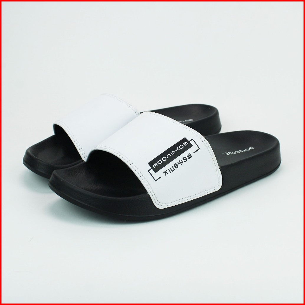 Boyscode Sendal Selop Pria Distro Kanji Japan Hitam Putih Sendal Slide Pria Sendal Slop Slip On Pria