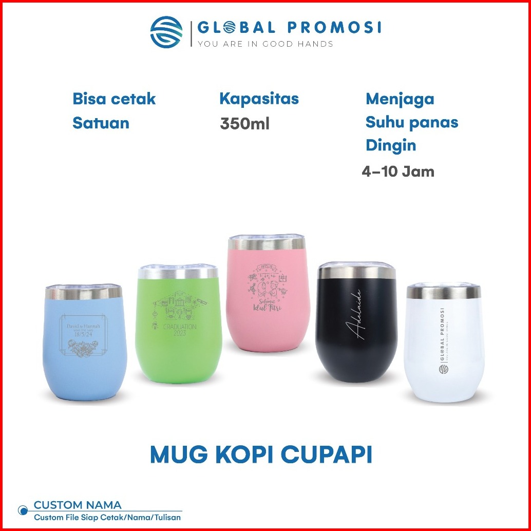 Mug Egg Cupapi 350ml Custom Coffee Stainless Gelas Minum Cetak Laser Grafir Nama Logo Souvenir