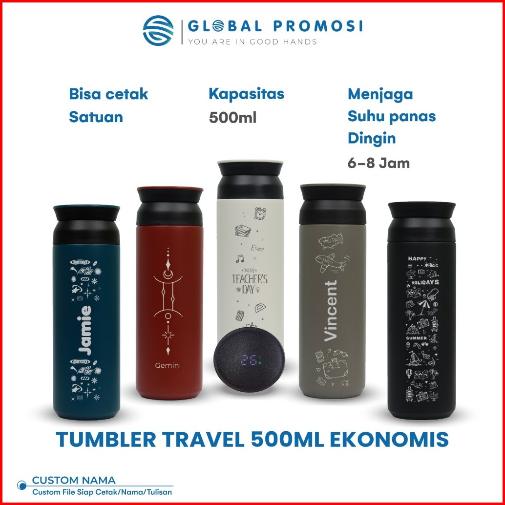 Custom Tumbler Travel 500ml Ekonomis Stainless Cetak Nama Logo Laser Grafir