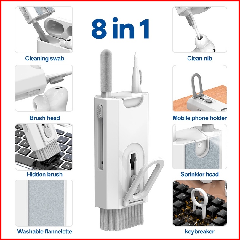 Pembersih Keyboard Laptop Handphone Headset 8 In 1 Pen Brush Botol Spray