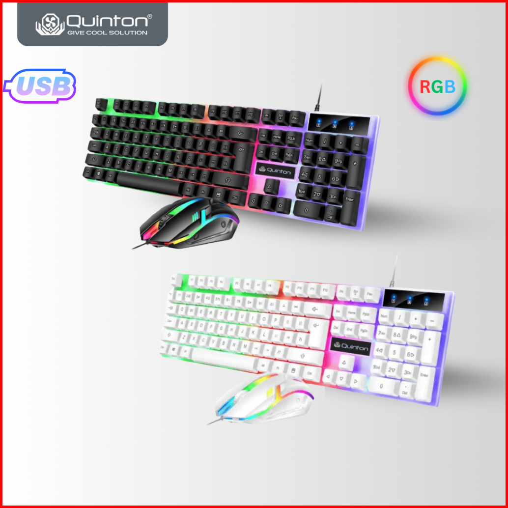 Quinton Keyboard Combo Mouse Gaming Rgb Usb Wired Full Size 104keys For Desktop Pc Laptop Windows