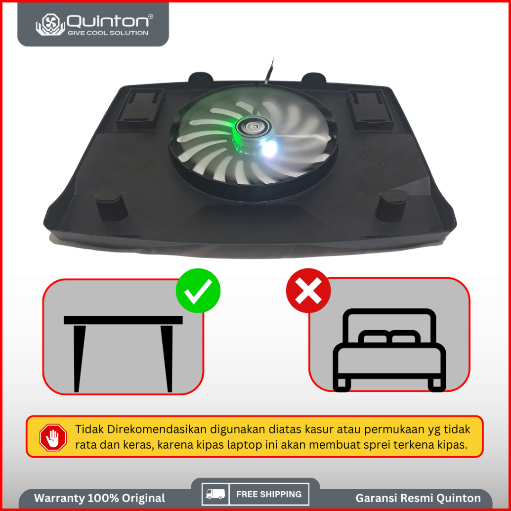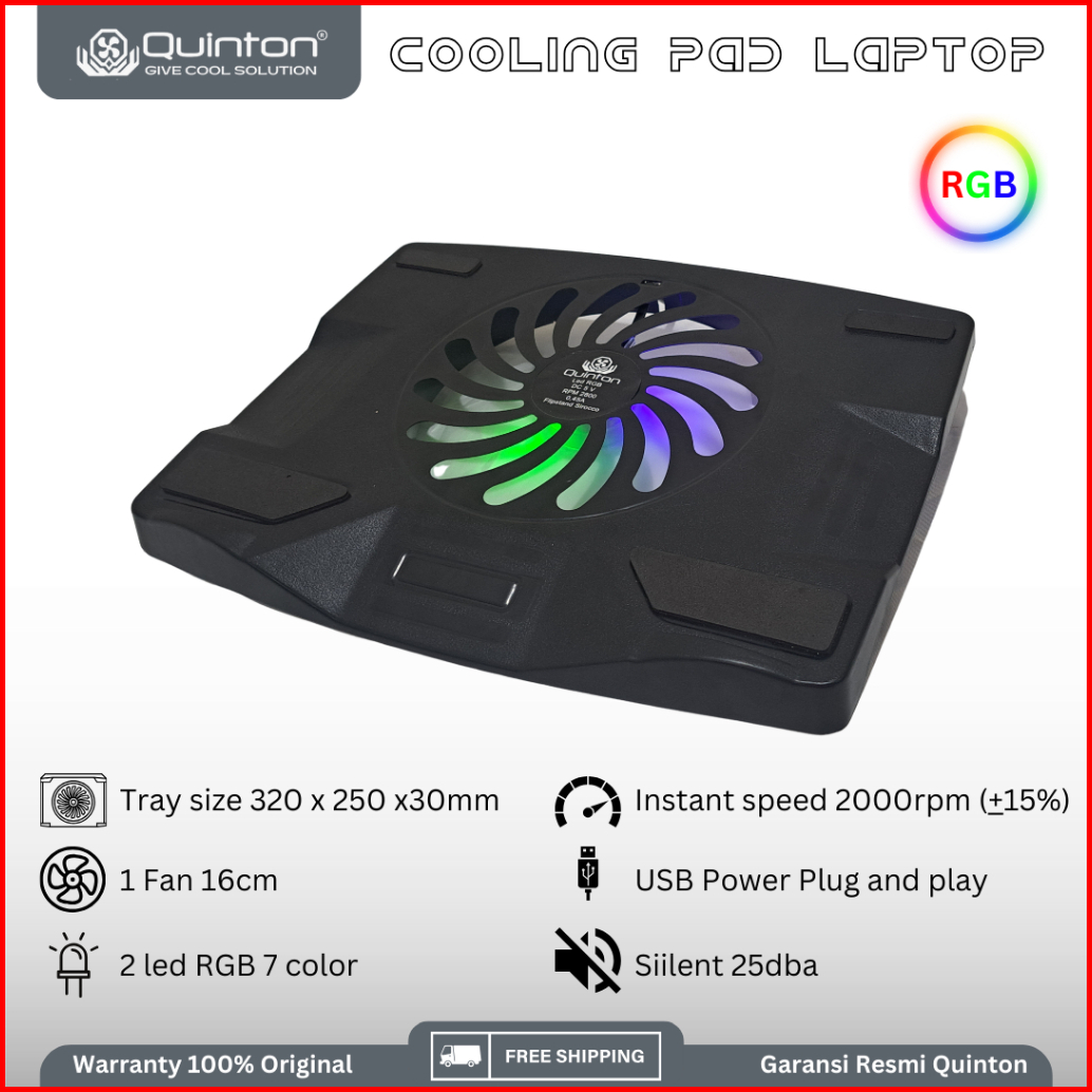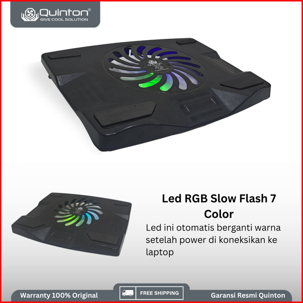 Quinton Kipas Laptop Cooling Pad Samoon 15 High Speed Motor Dengan 2 Led Rgb