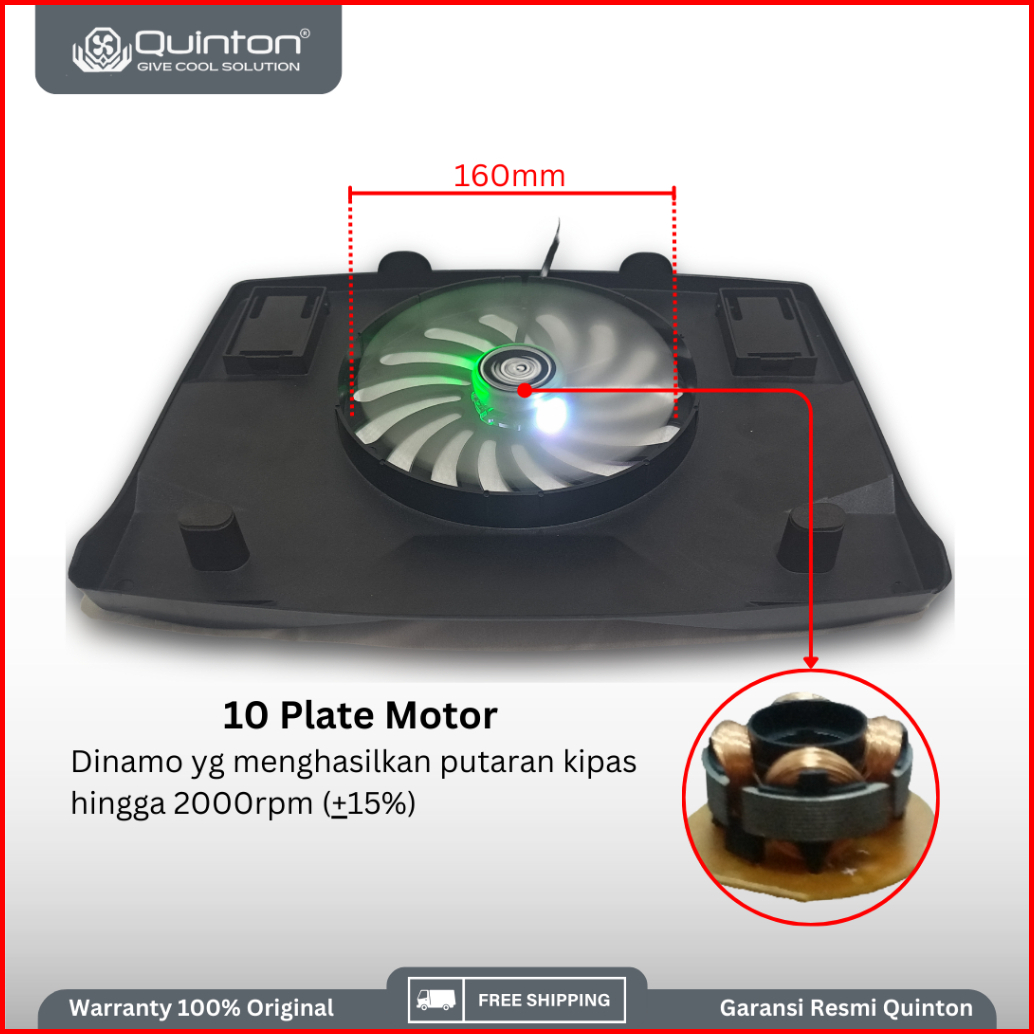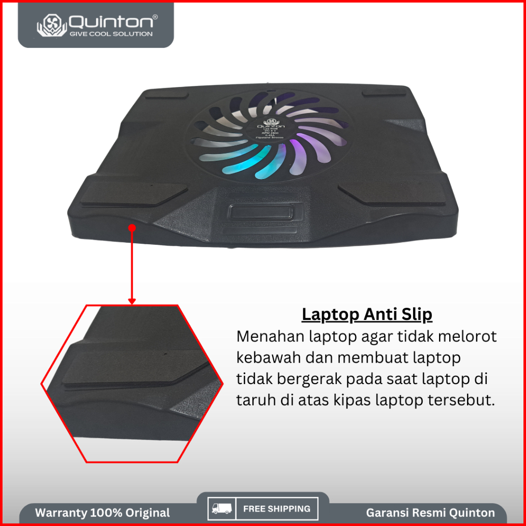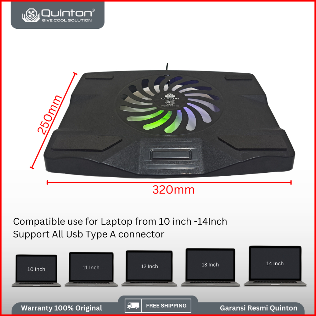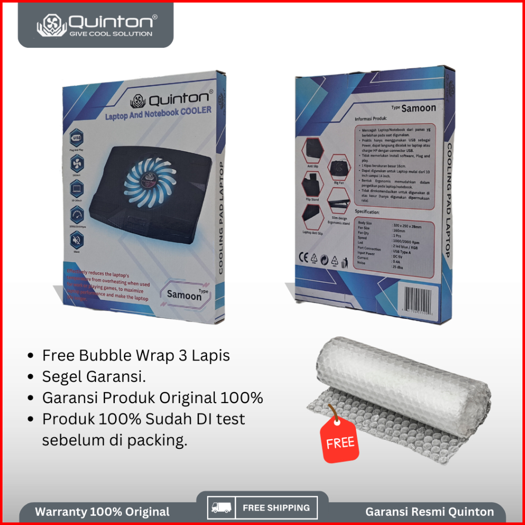 Quinton Kipas Laptop Cooling Pad Samoon 15 High Speed Motor Dengan 2 Led Rgb