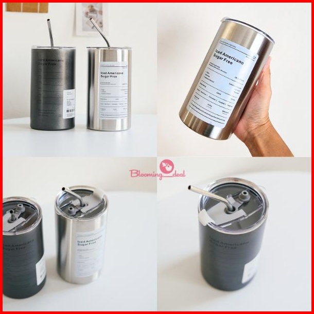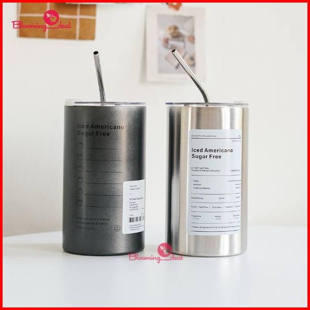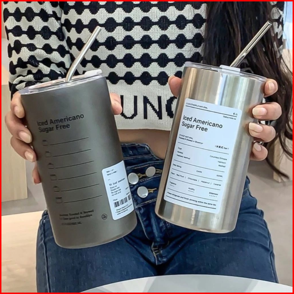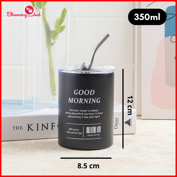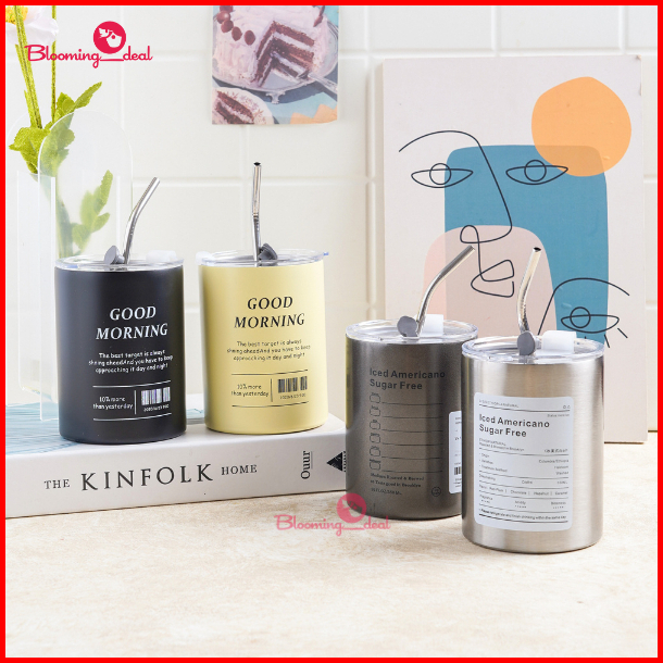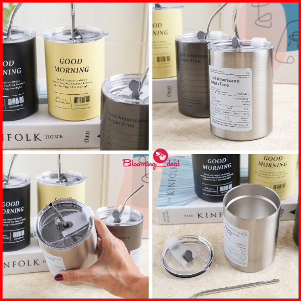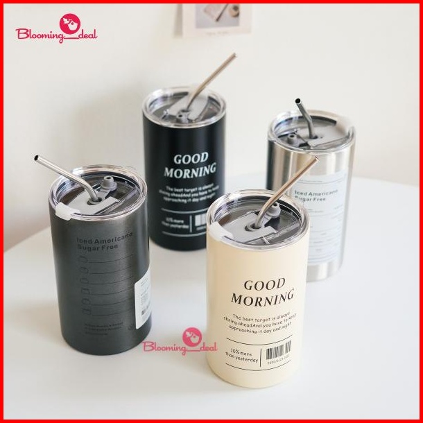 Tumbler Aesthetic Coffee Cup Good Morning Stainless Steel Bonus Sedotan 600ml Sd1183