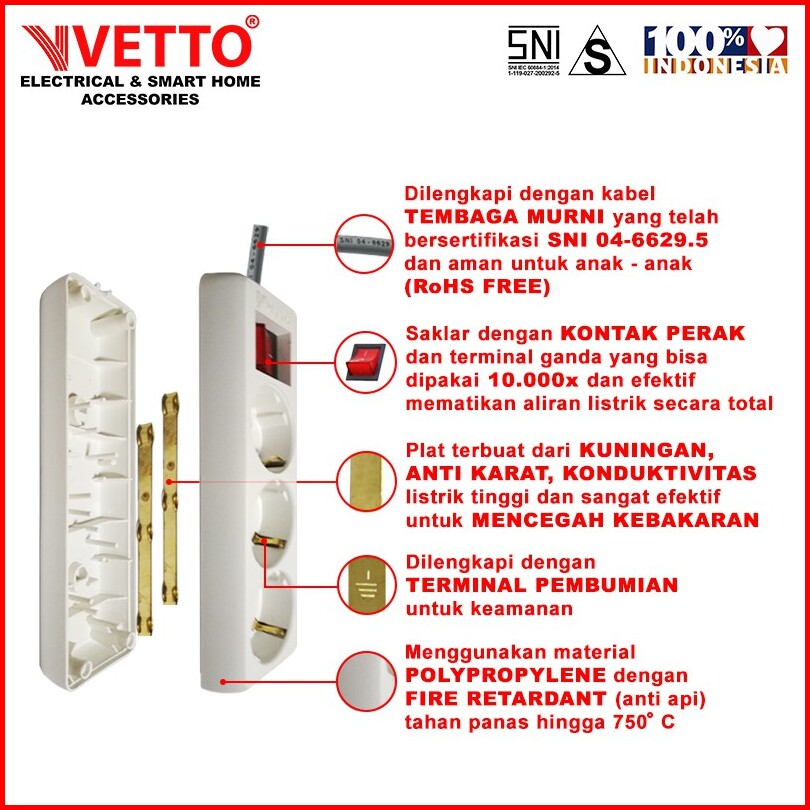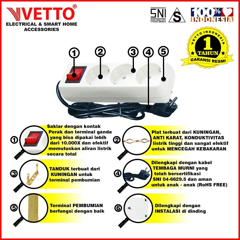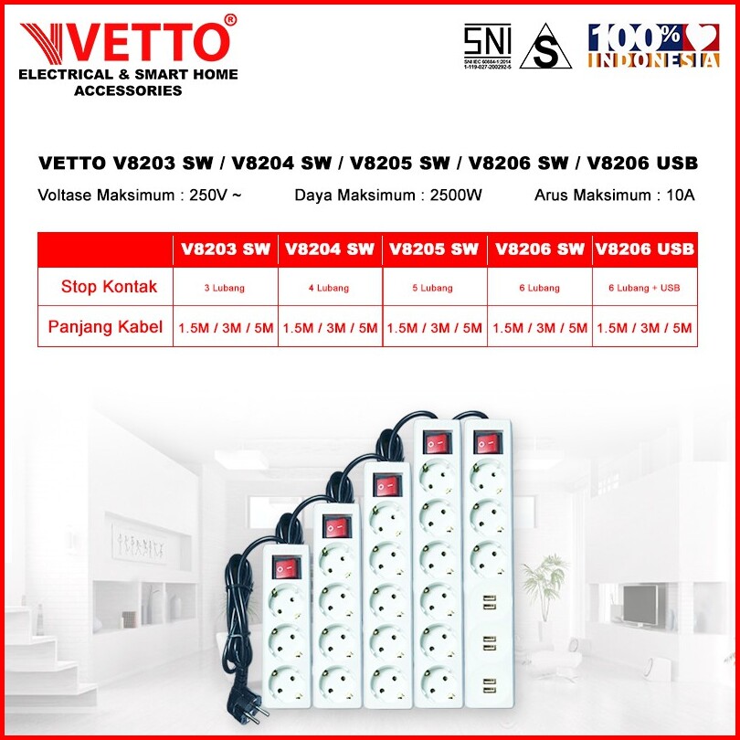 Vetto V8203 1.5m Sw Stop Kontak - 1.5 Meter Sni